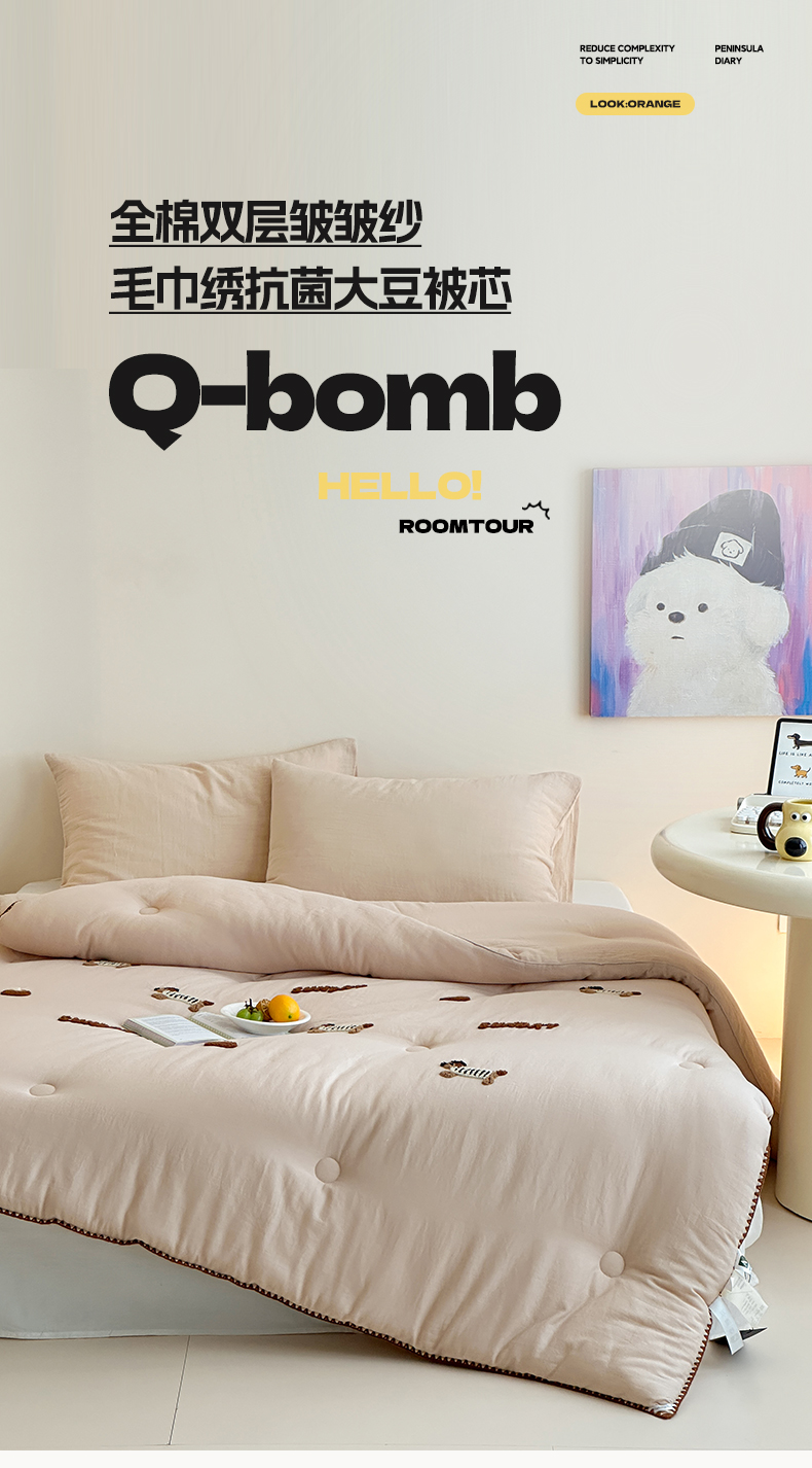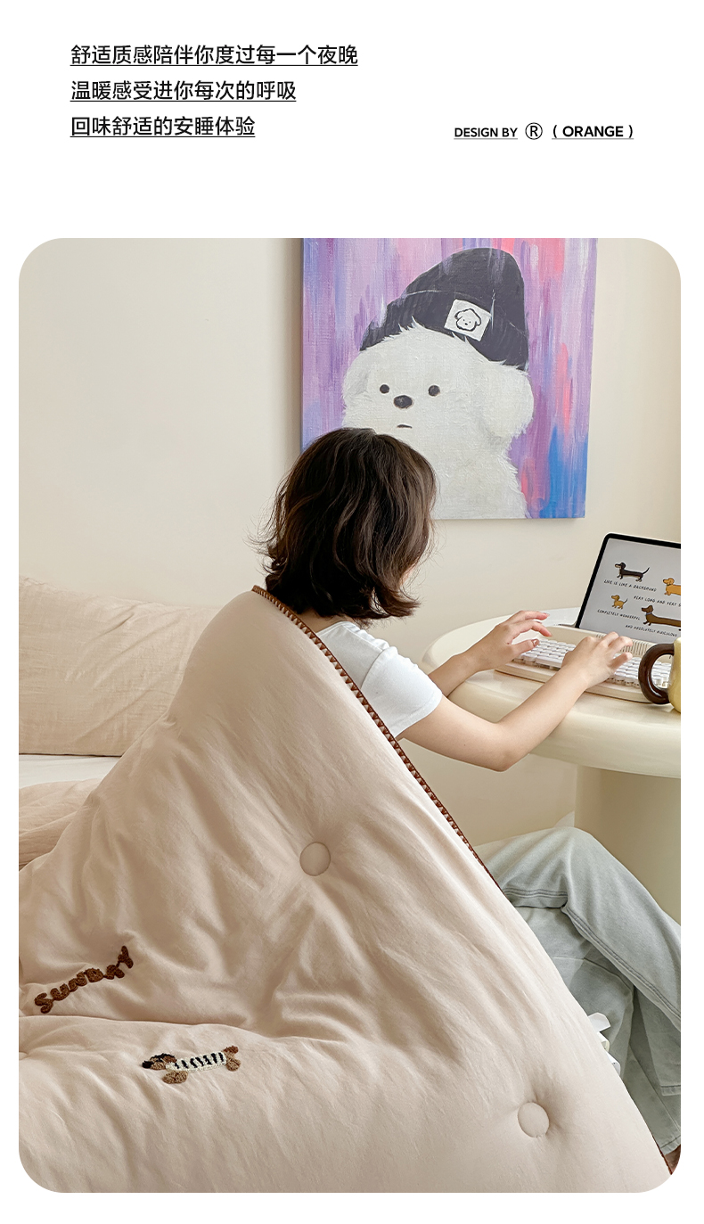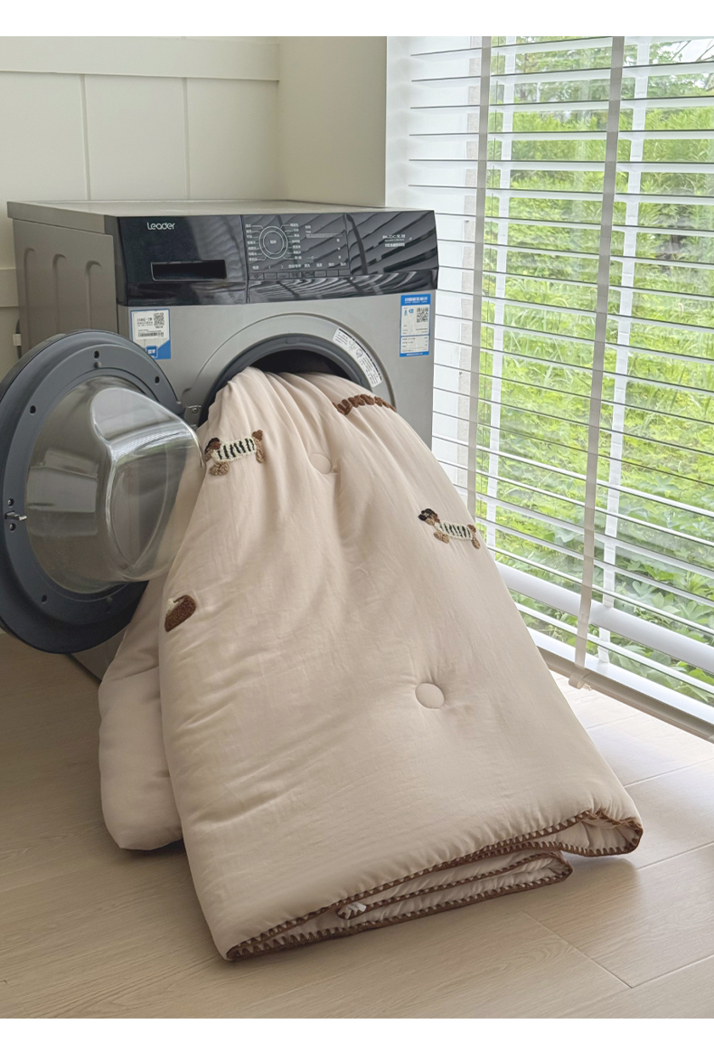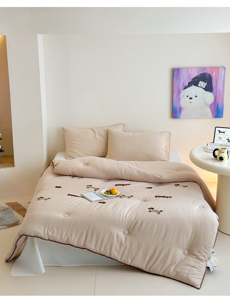 • 91家纺网 家纺一手货源 找家纺 一加一 2025新款全棉双层皱皱纱毛巾绣抗菌大豆被芯 腊肠狗