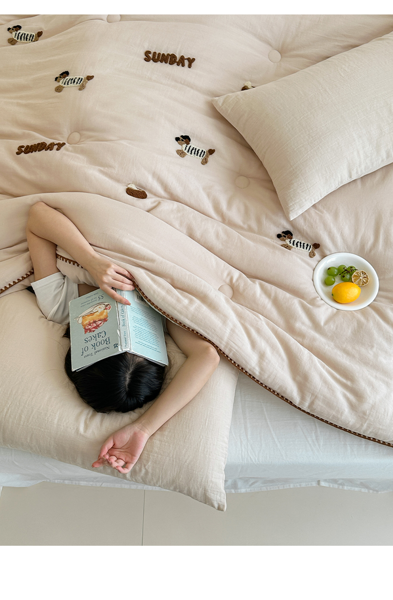 • 91家纺网 家纺一手货源 找家纺 (总)一加一 2026新款全棉色织水洗棉毛巾绣大豆夏被夏凉被空调被-腊肠狗,腊肠狗-粉条,腊肠狗-海盐,腊肠狗-灰条,腊肠狗-蓝调,腊肠狗-奶白,腊肠狗-樱花