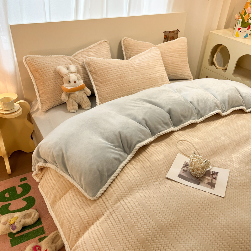 当前位置: 91家纺网 > 商品网购 > 床品套件 > 四件套 > 牛奶绒四件套 > 蓝极人 2025新款成品提花包边牛奶绒四件套 提花-杏灰