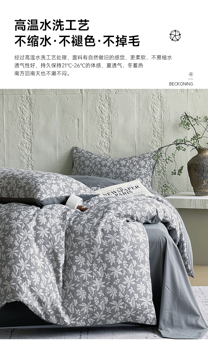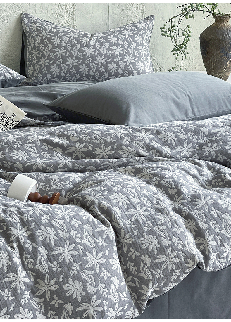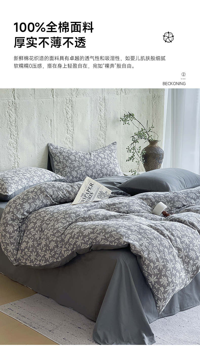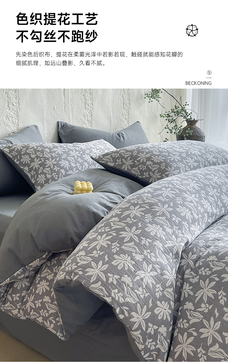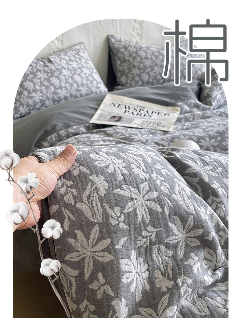 商品名称:佰亿莱 2026新款棉麻双层纱四件套 茉莉-深灰