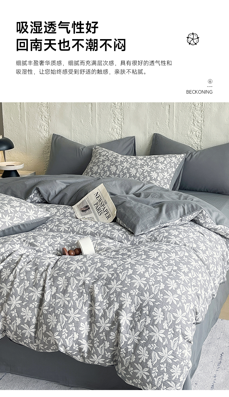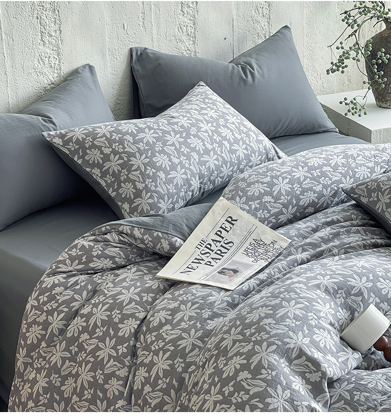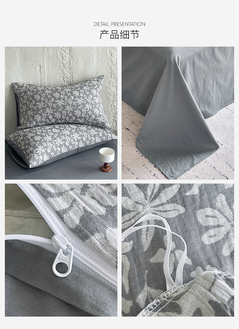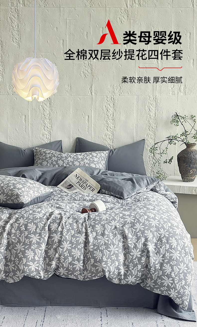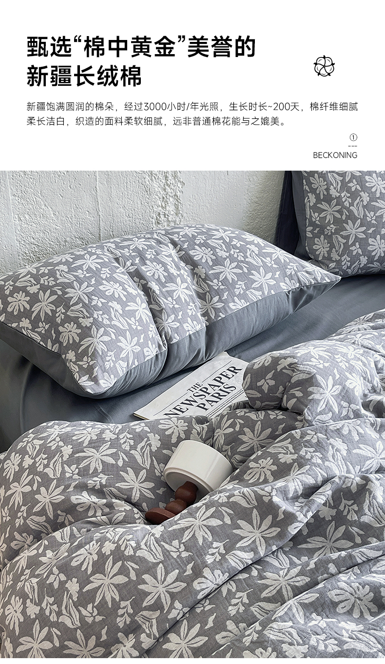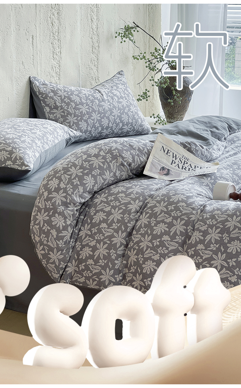 商品名称:佰亿莱 2026新款棉麻双层纱四件套 茉莉-深灰