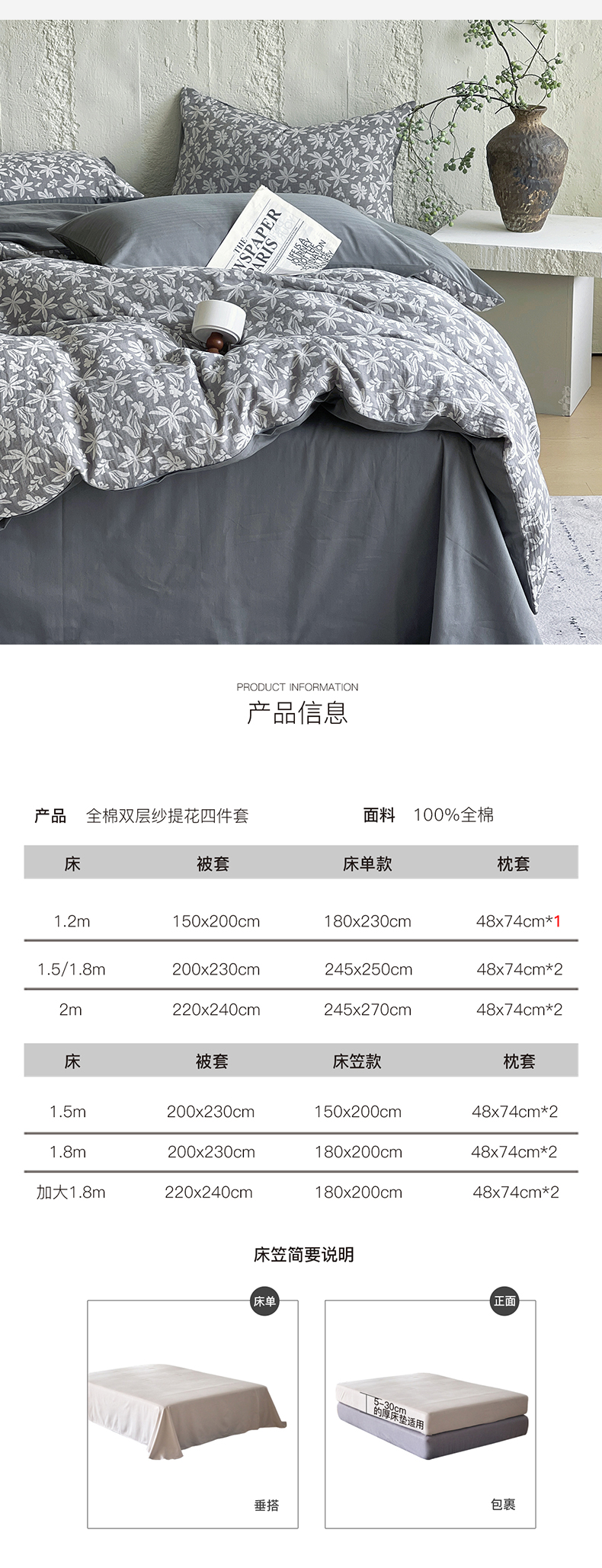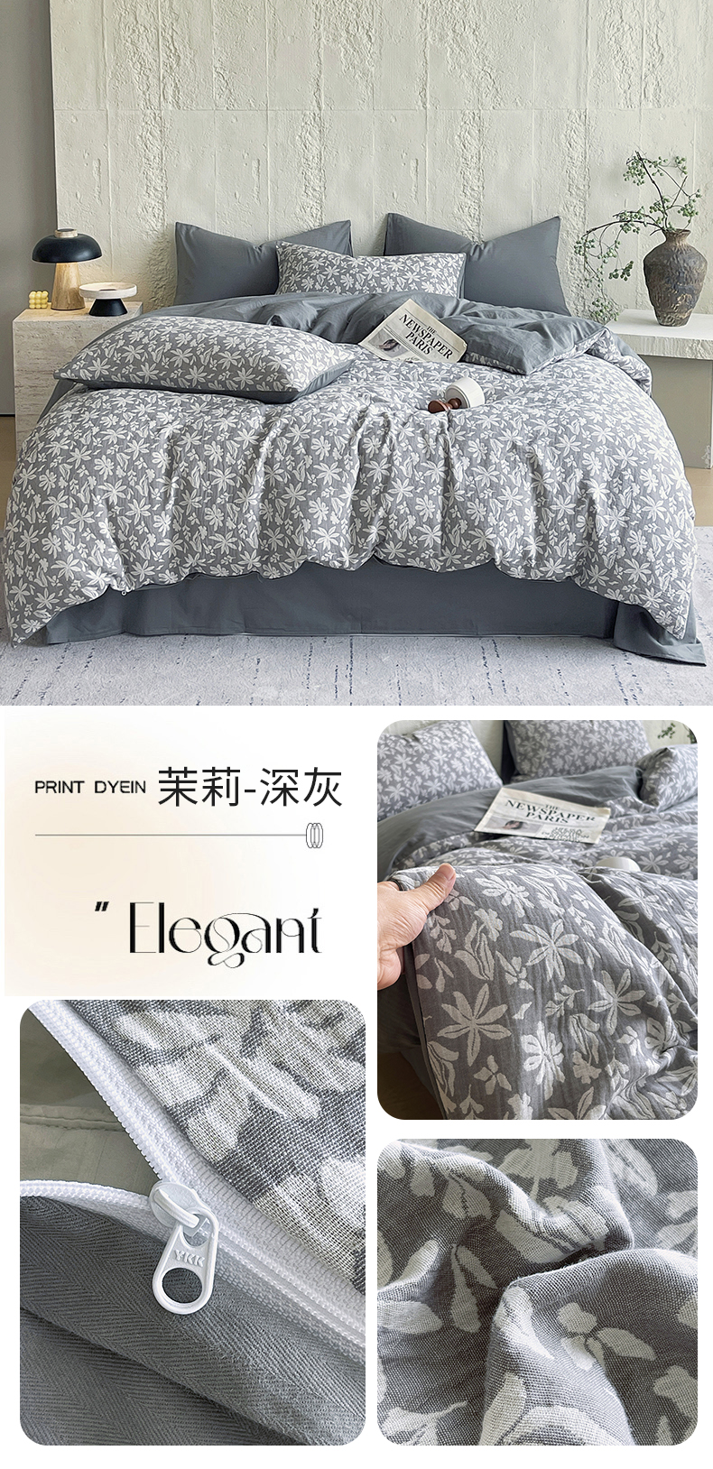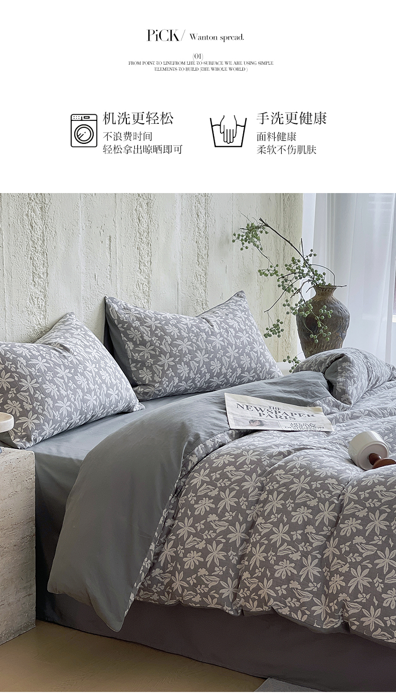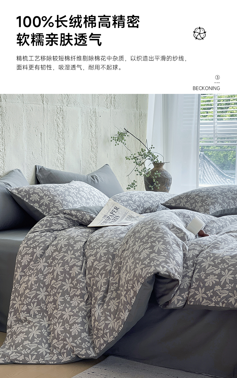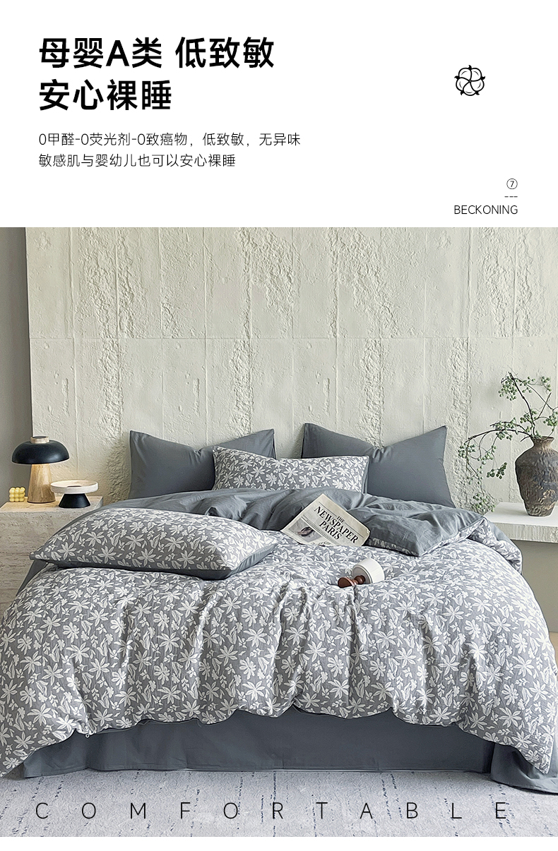 商品名称:佰亿莱 2026新款棉麻双层纱四件套 茉莉-深灰