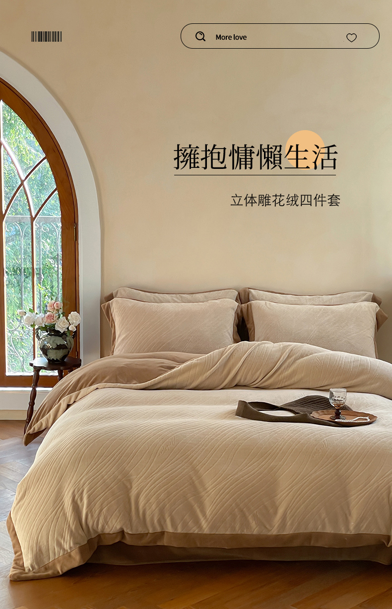 商品名称:云栖家居 2025秋冬新款消光立体雕花A类牛奶绒-暖意融融系列 晓野-咖