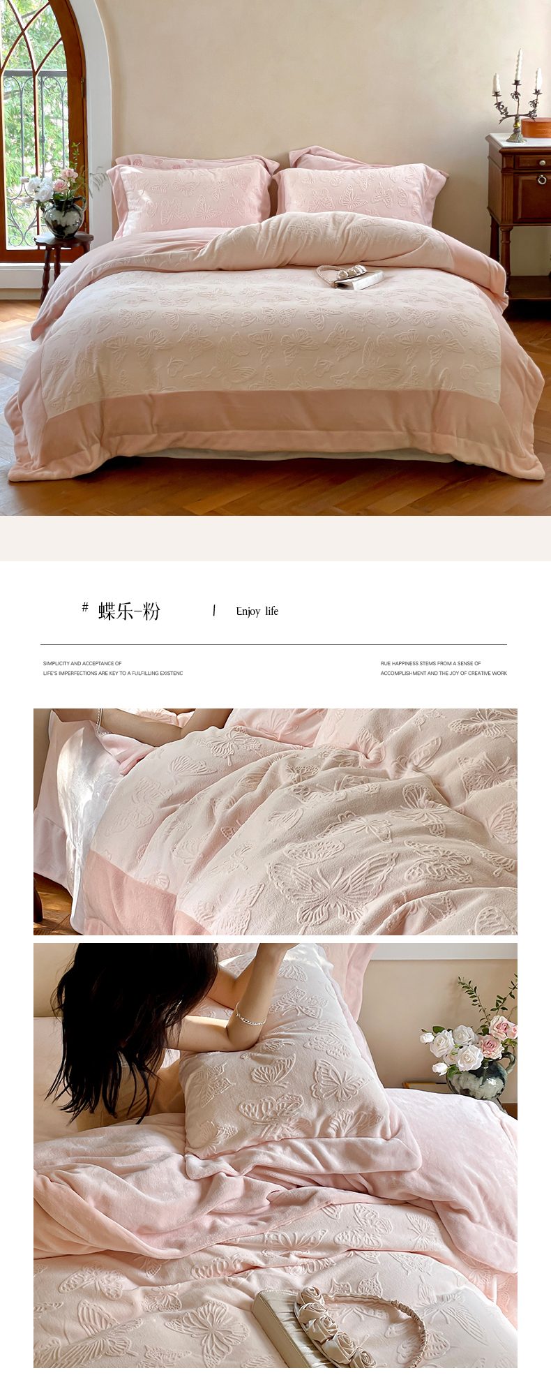 (总)云栖家居 2025秋冬新款加厚纯色刺绣牛奶绒四件套-福蝶多多,福蝶多多-粉,福蝶多多-紫