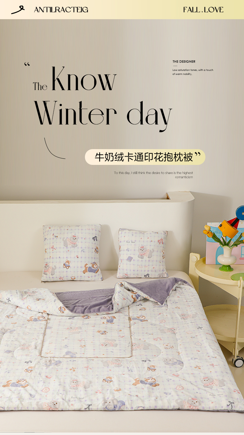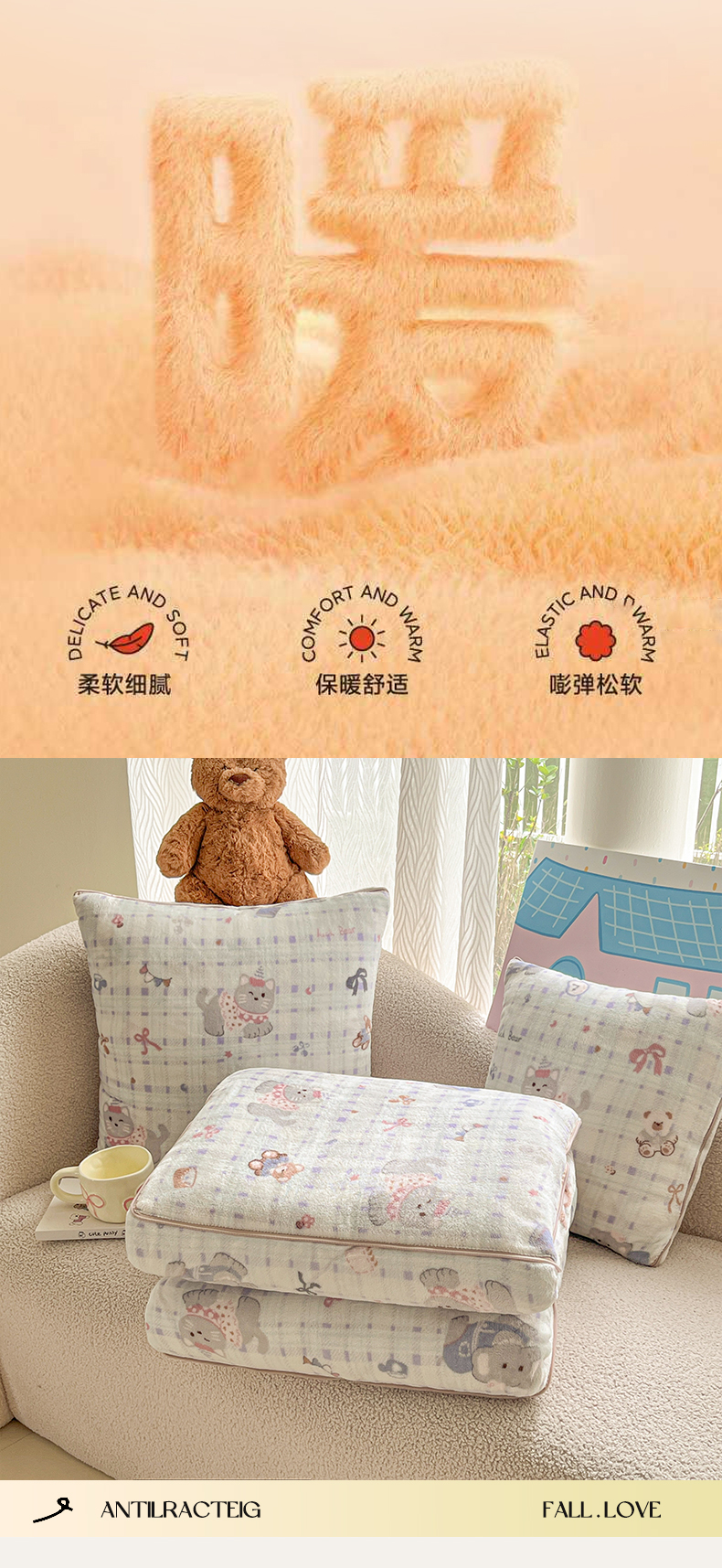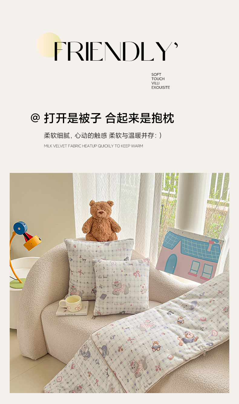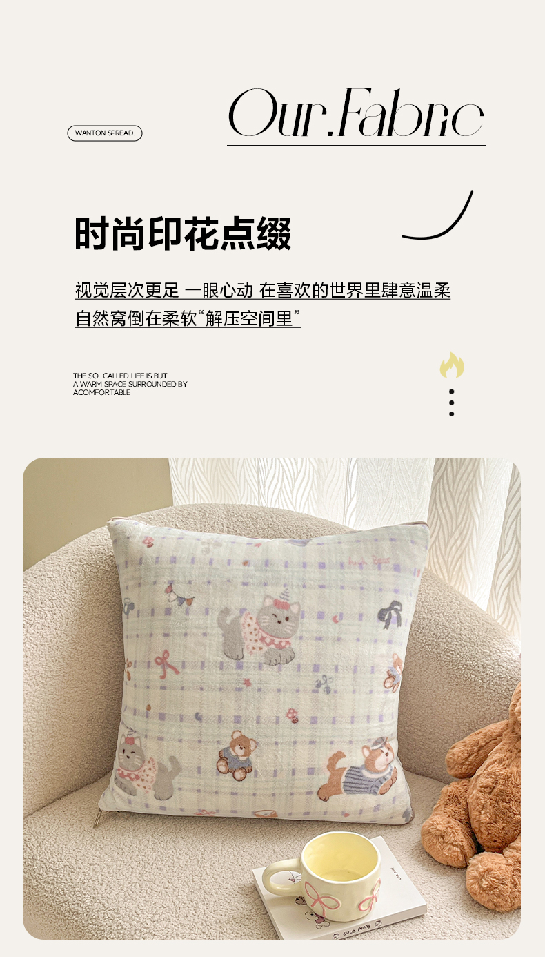 番茄+ 2025新款牛奶绒卡通印花抱枕被 小象与猫咪