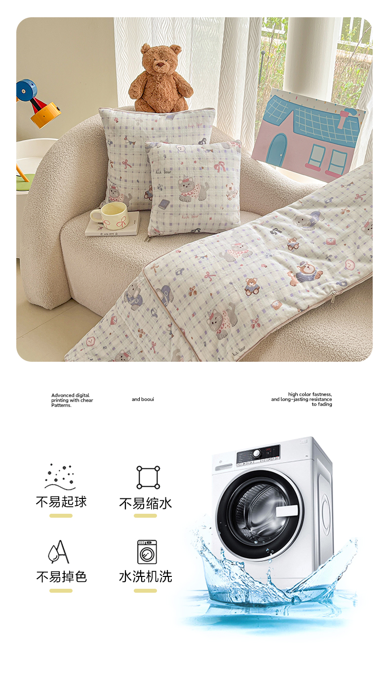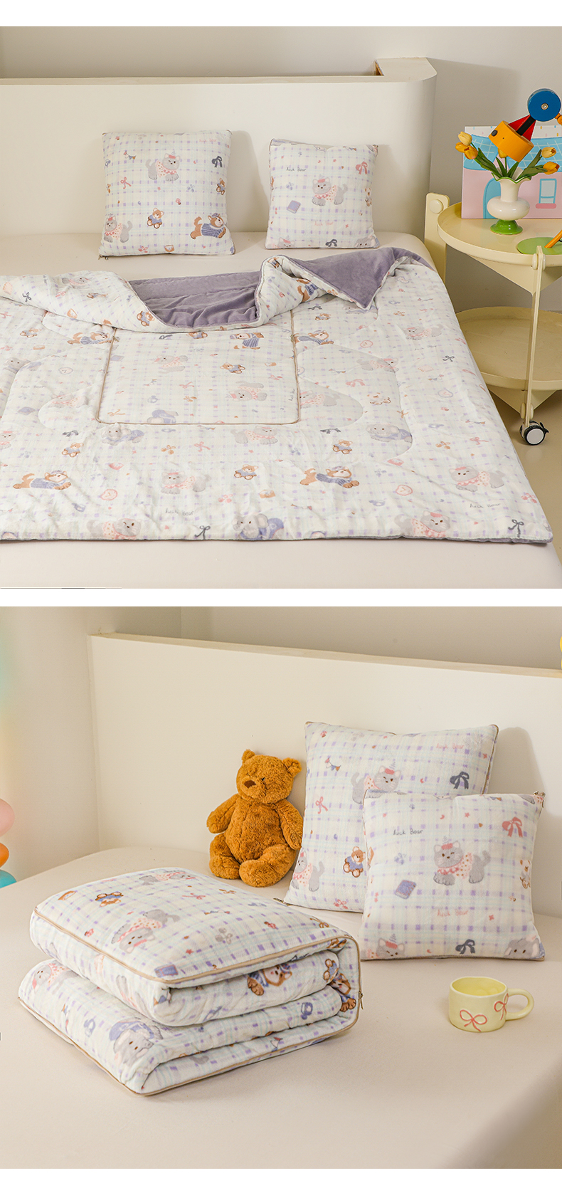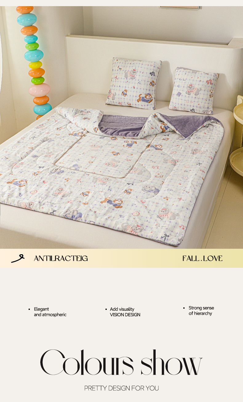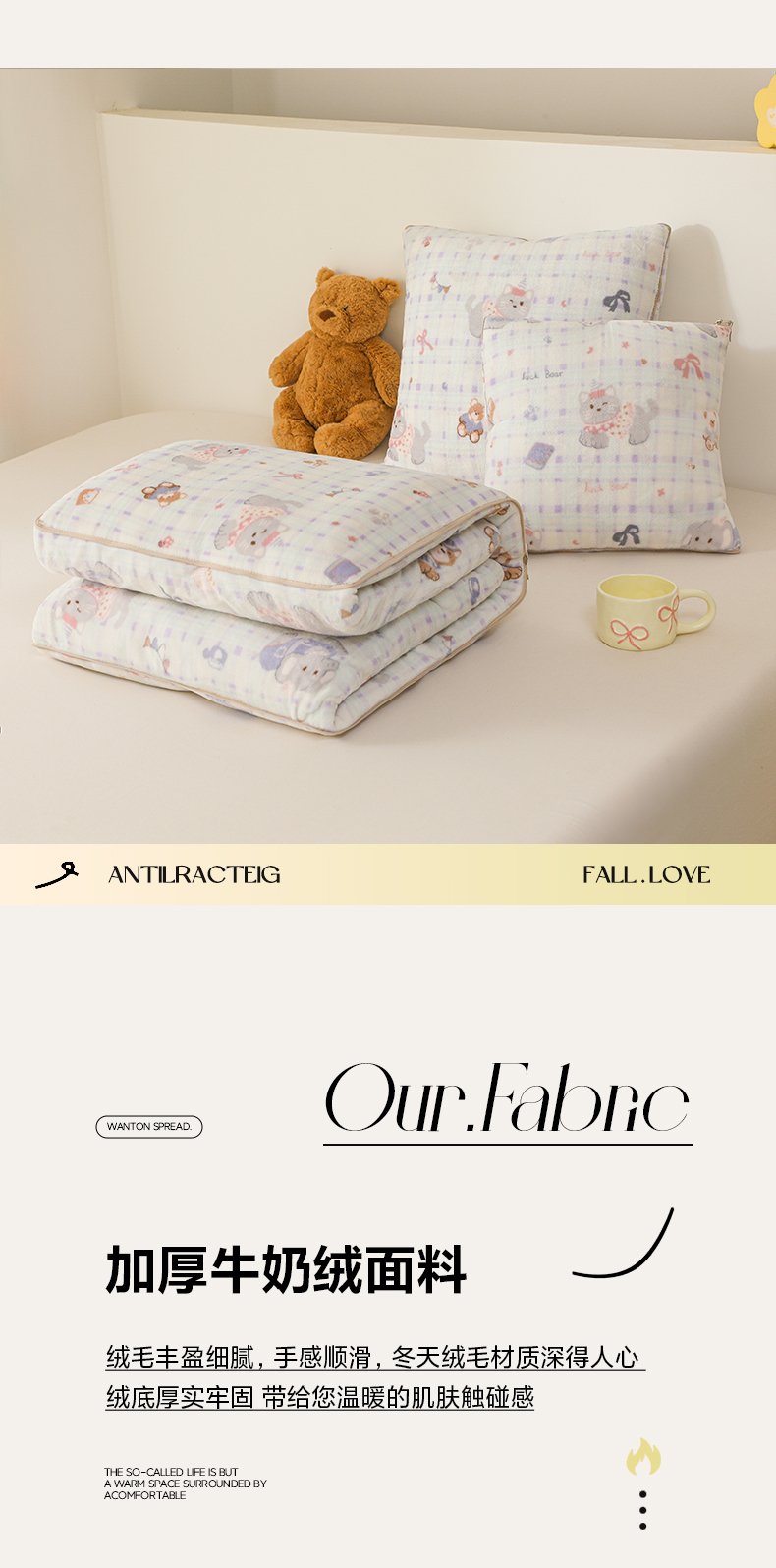 番茄+ 2025新款牛奶绒卡通印花抱枕被 小象与猫咪