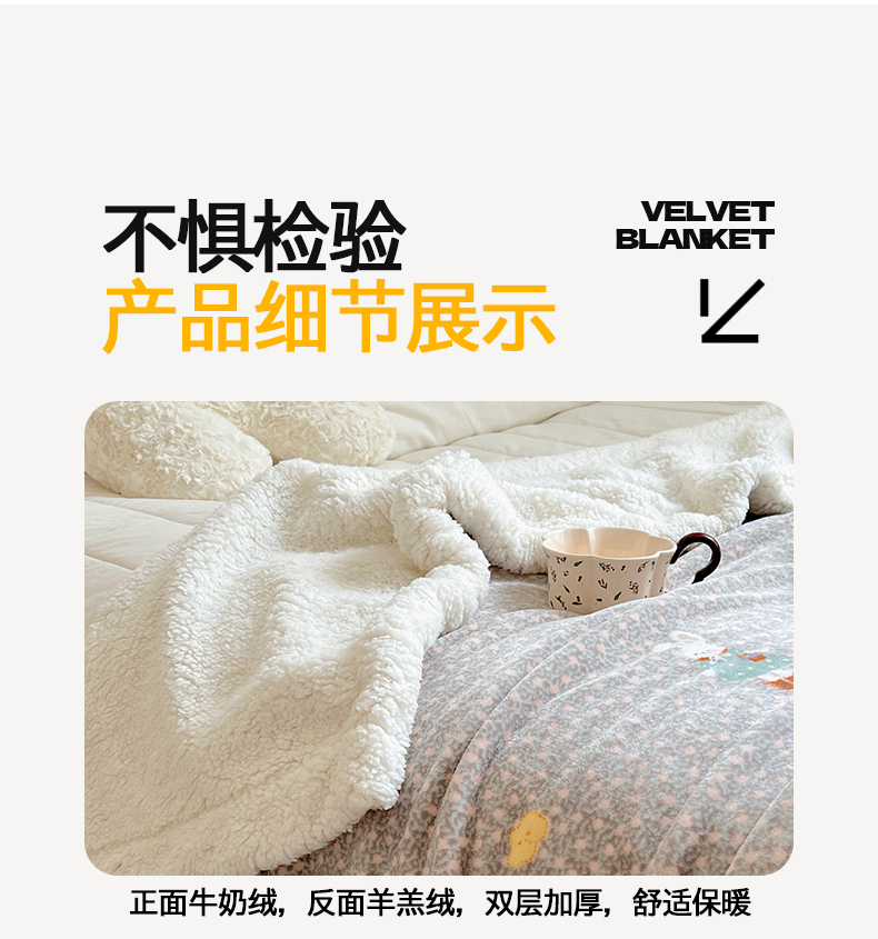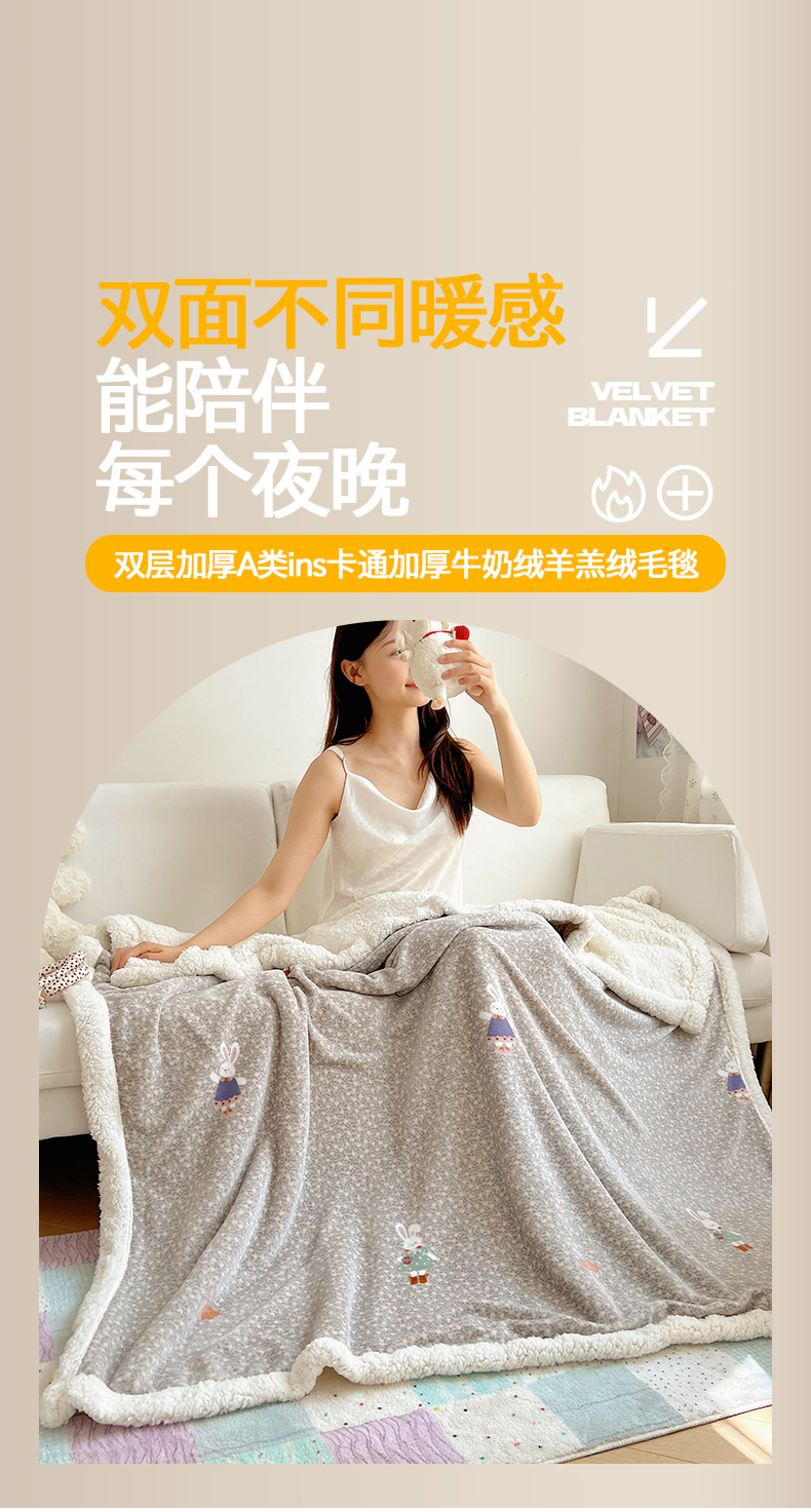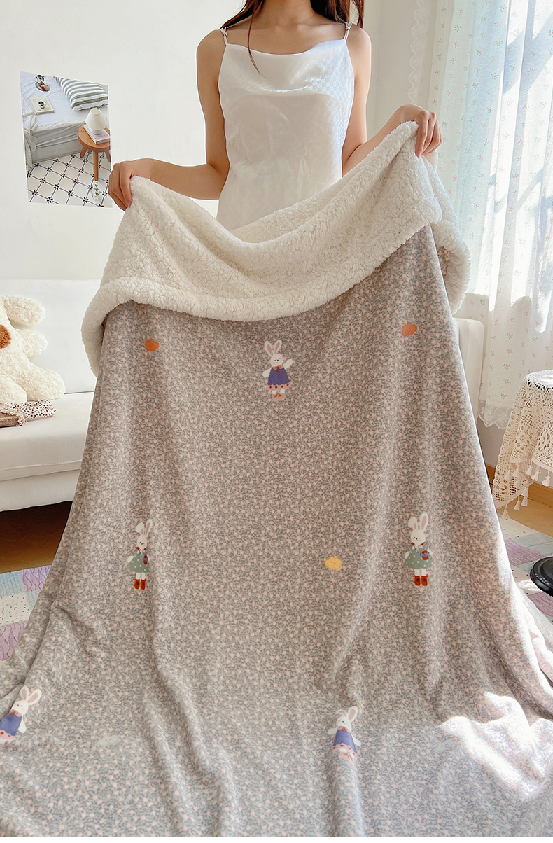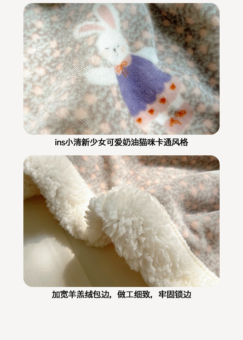 商品名称:桃子家居 2025新款A类ins小清新少女可爱奶油猫咪卡通加厚牛奶绒羊羔绒毛毯多功能毛毯 绒毛毯-MT甜甜兔