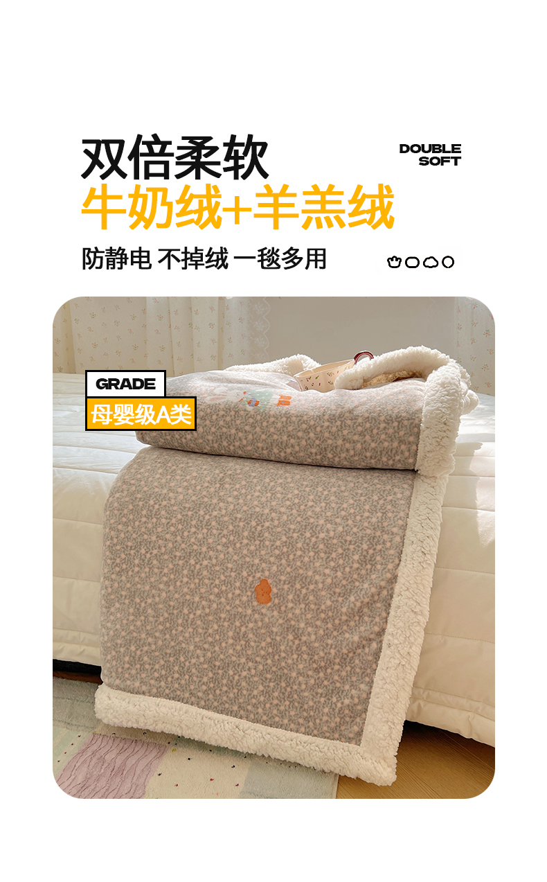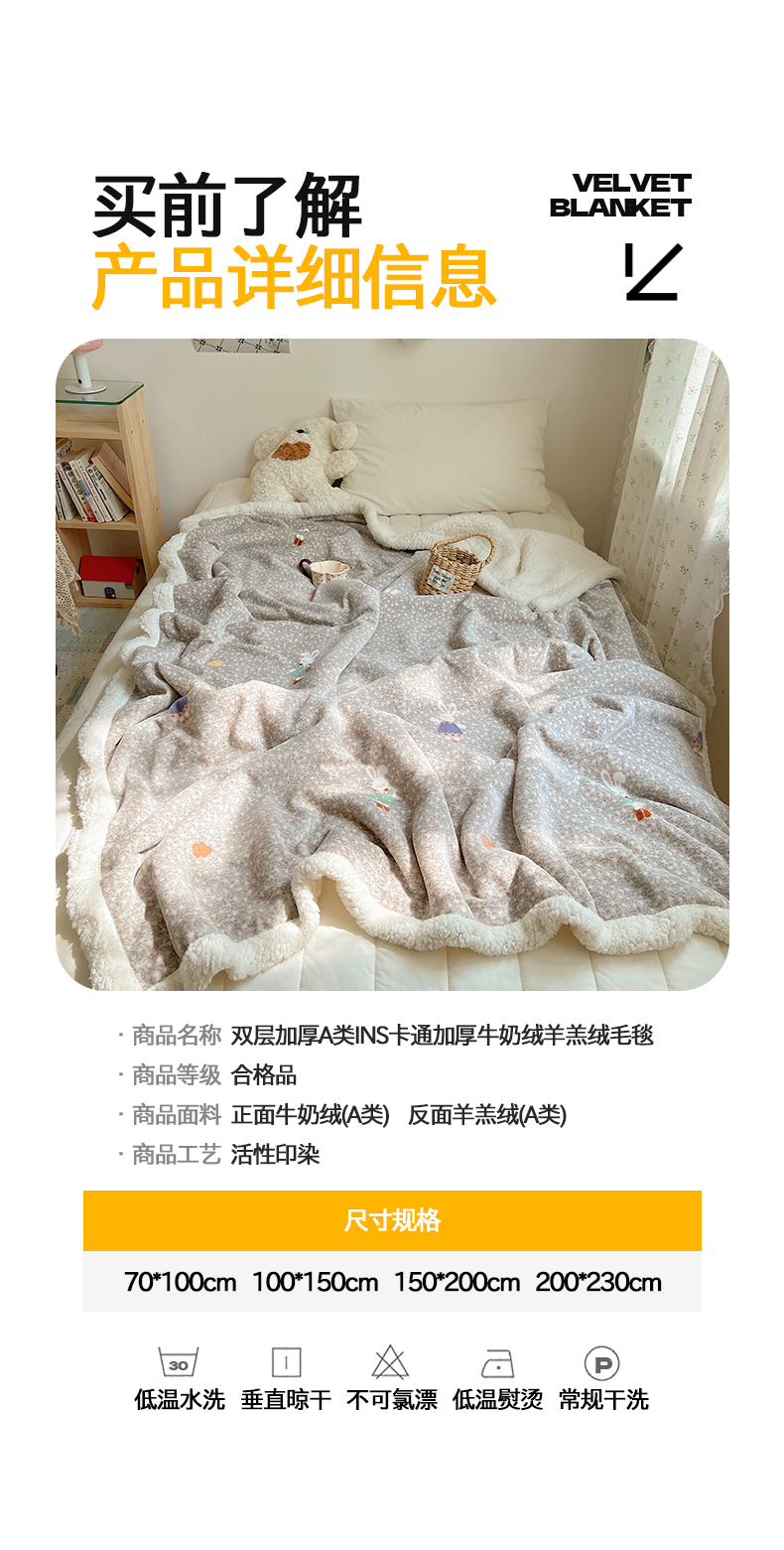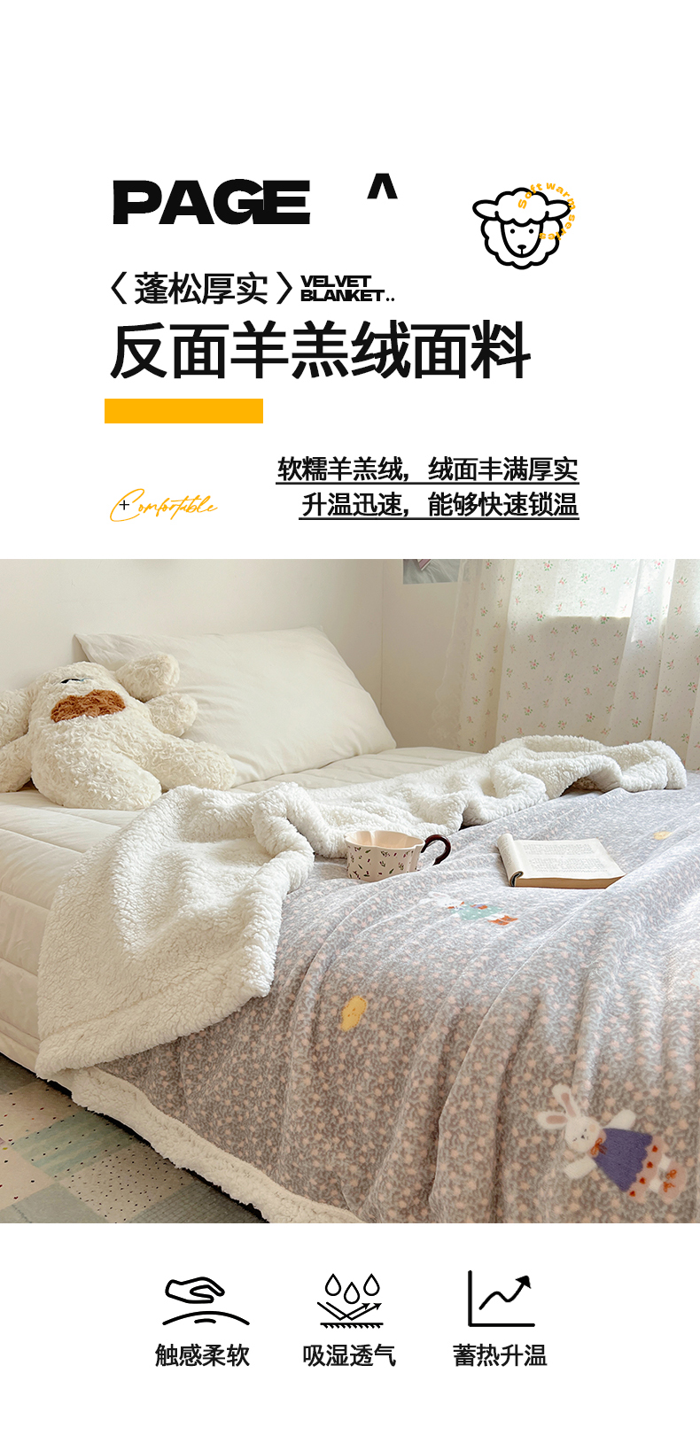商品名称:桃子家居 2025新款A类ins小清新少女可爱奶油猫咪卡通加厚牛奶绒羊羔绒毛毯多功能毛毯 绒毛毯-MT甜甜兔