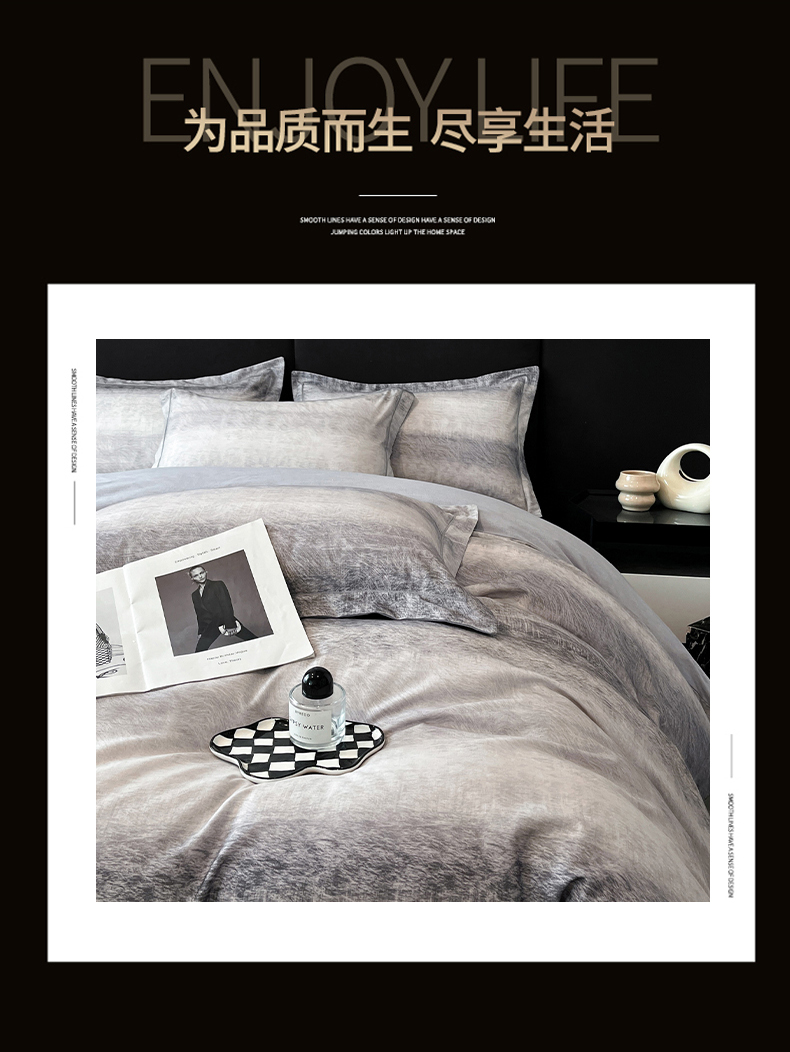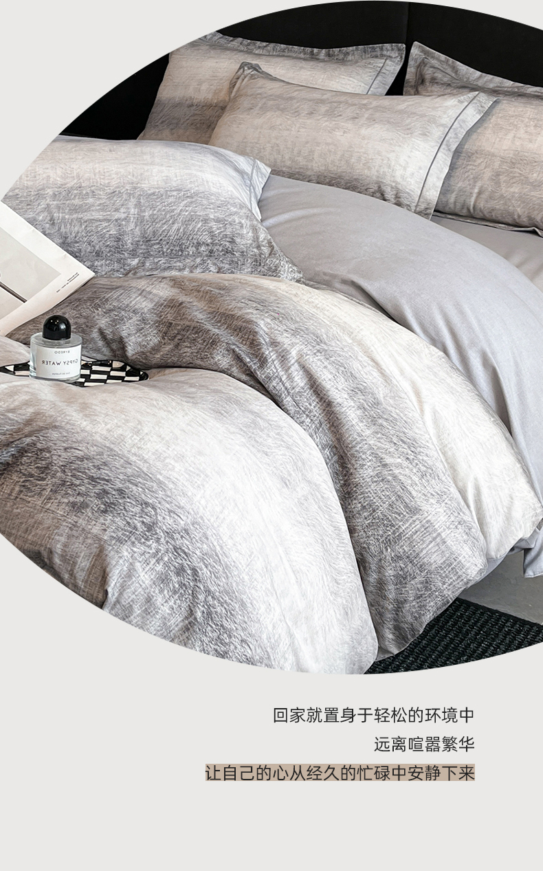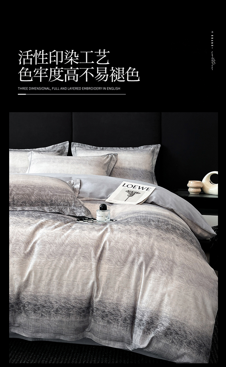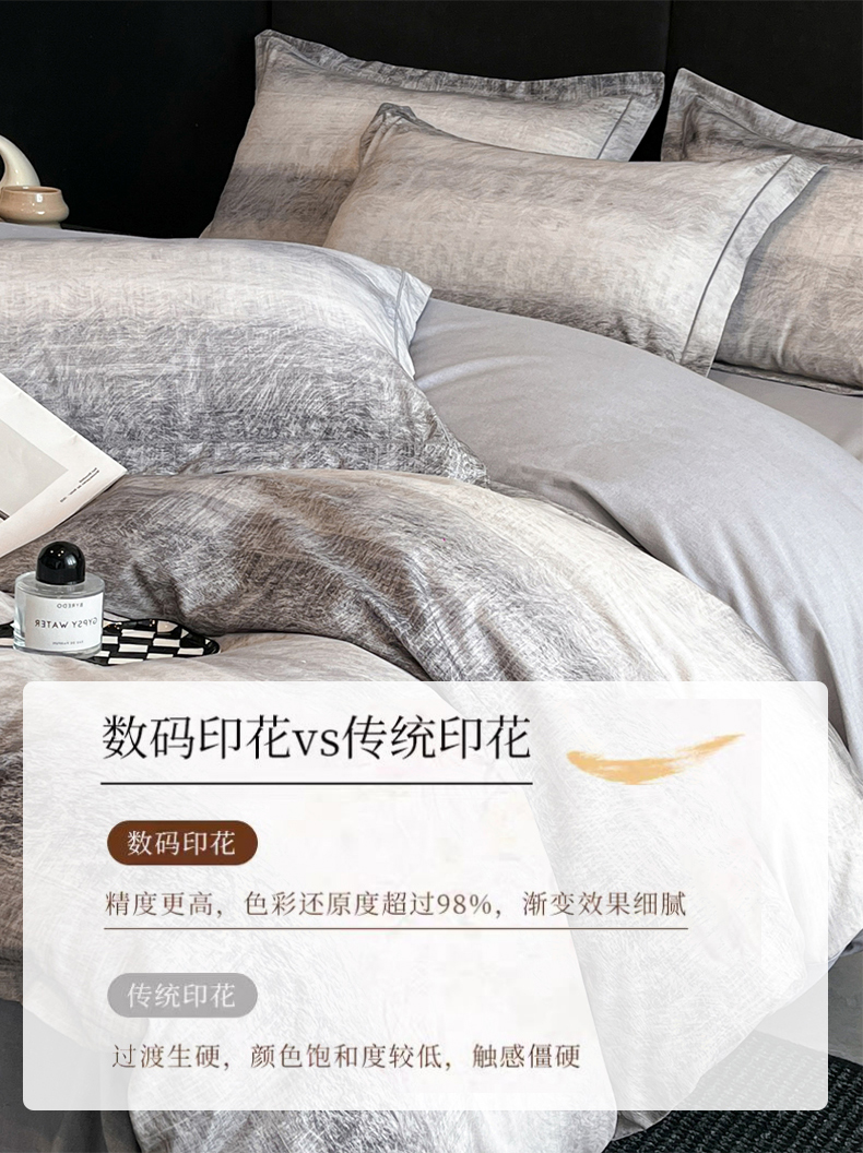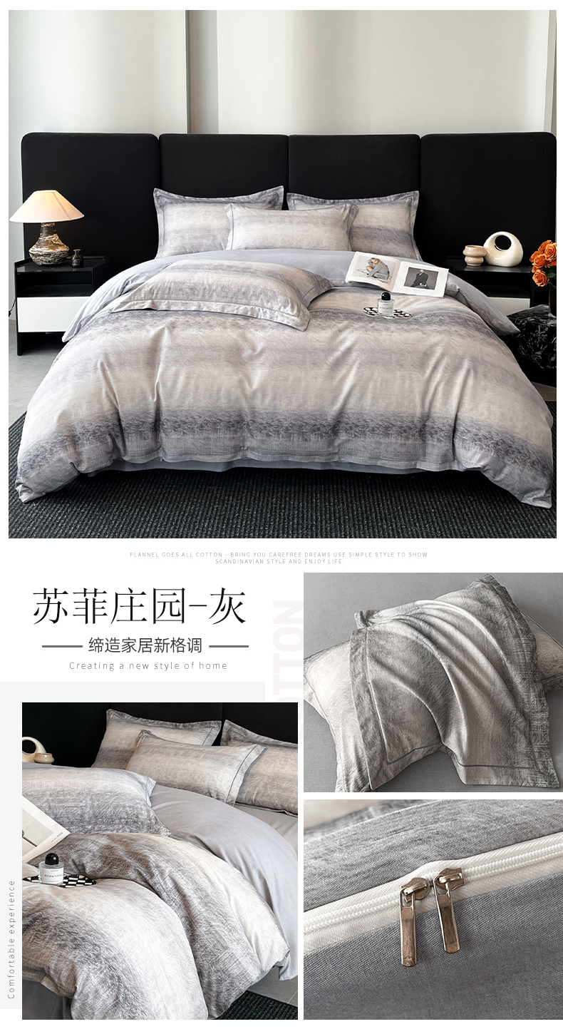 海洋家纺 2026新款100%全棉磨毛数码印花四件套加厚全棉四件套-提供买家秀 苏菲庄园 灰