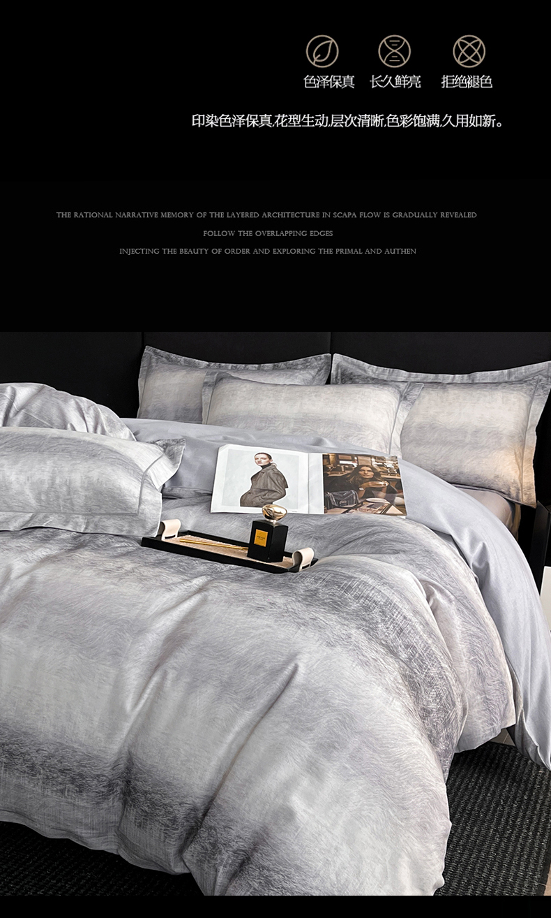 商品名称:海洋家纺 2026新款100%全棉磨毛数码印花四件套加厚全棉四件套-提供买家秀 苏菲庄园 灰