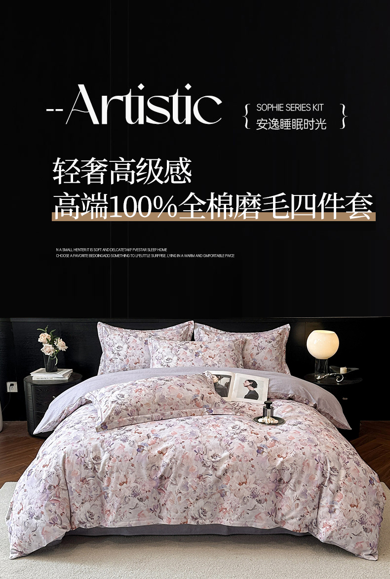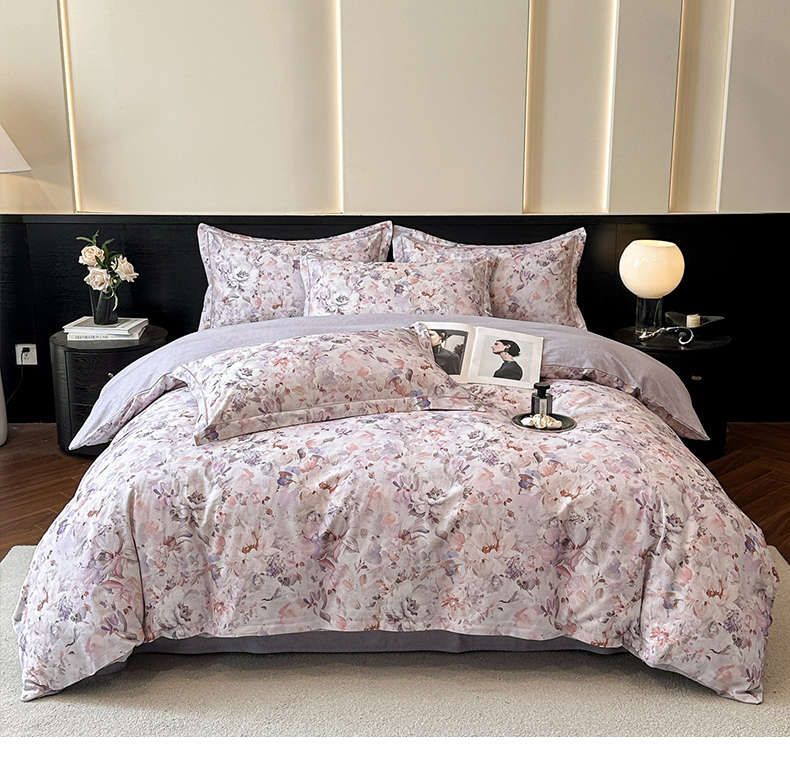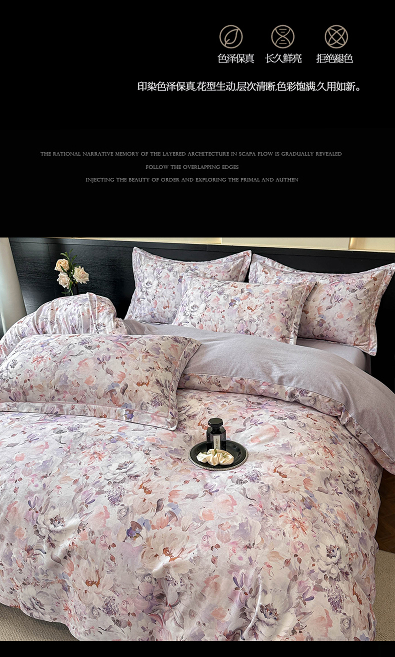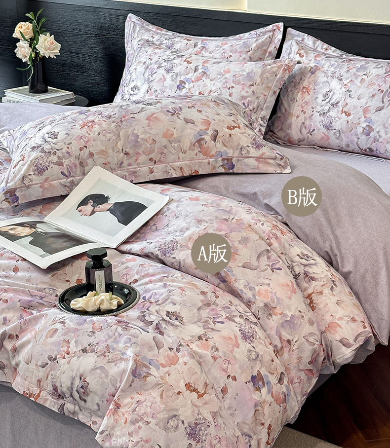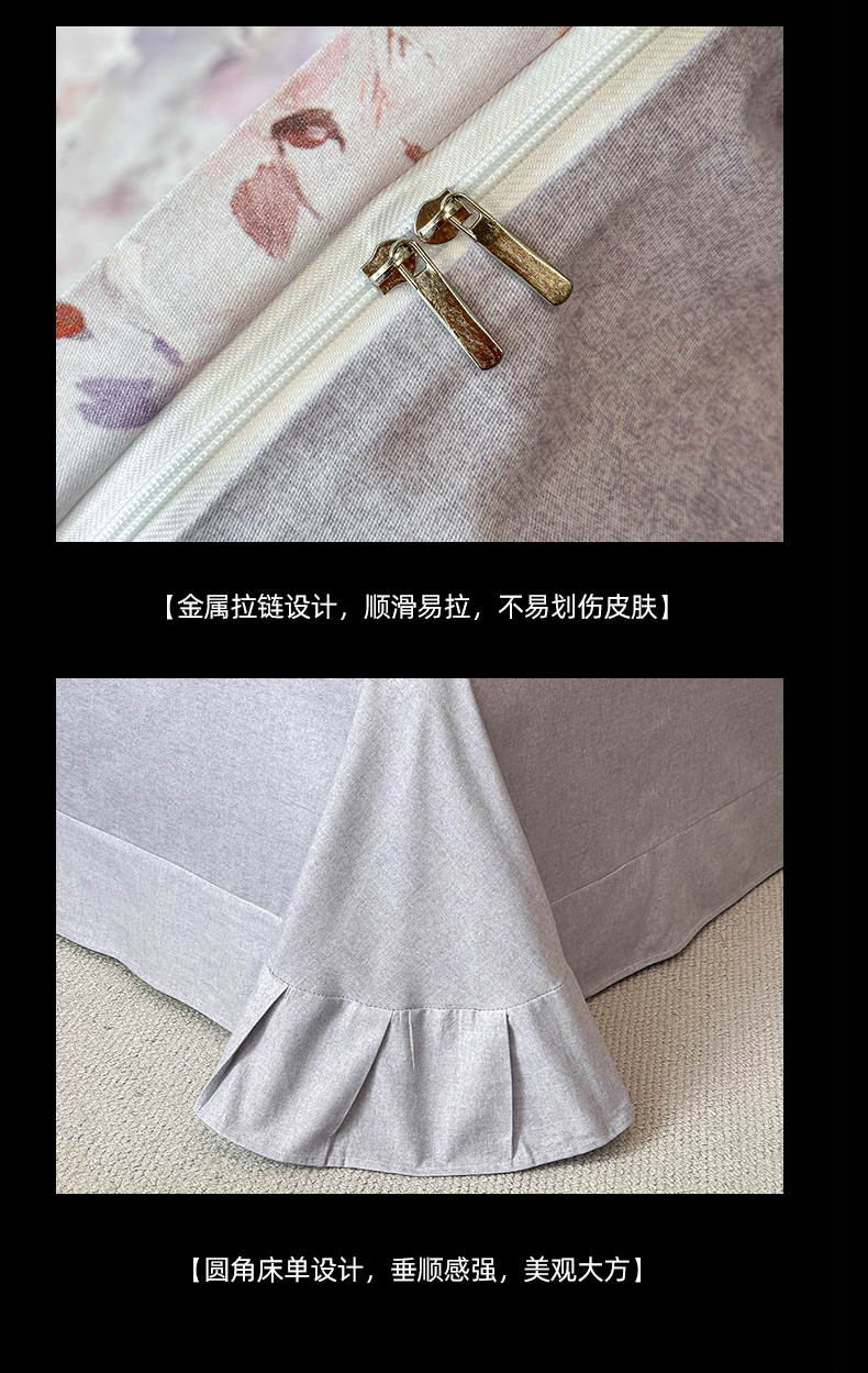 海洋家纺 2026新款100%全棉磨毛数码印花四件套加厚全棉四件套-提供买家秀 花期如梦 紫