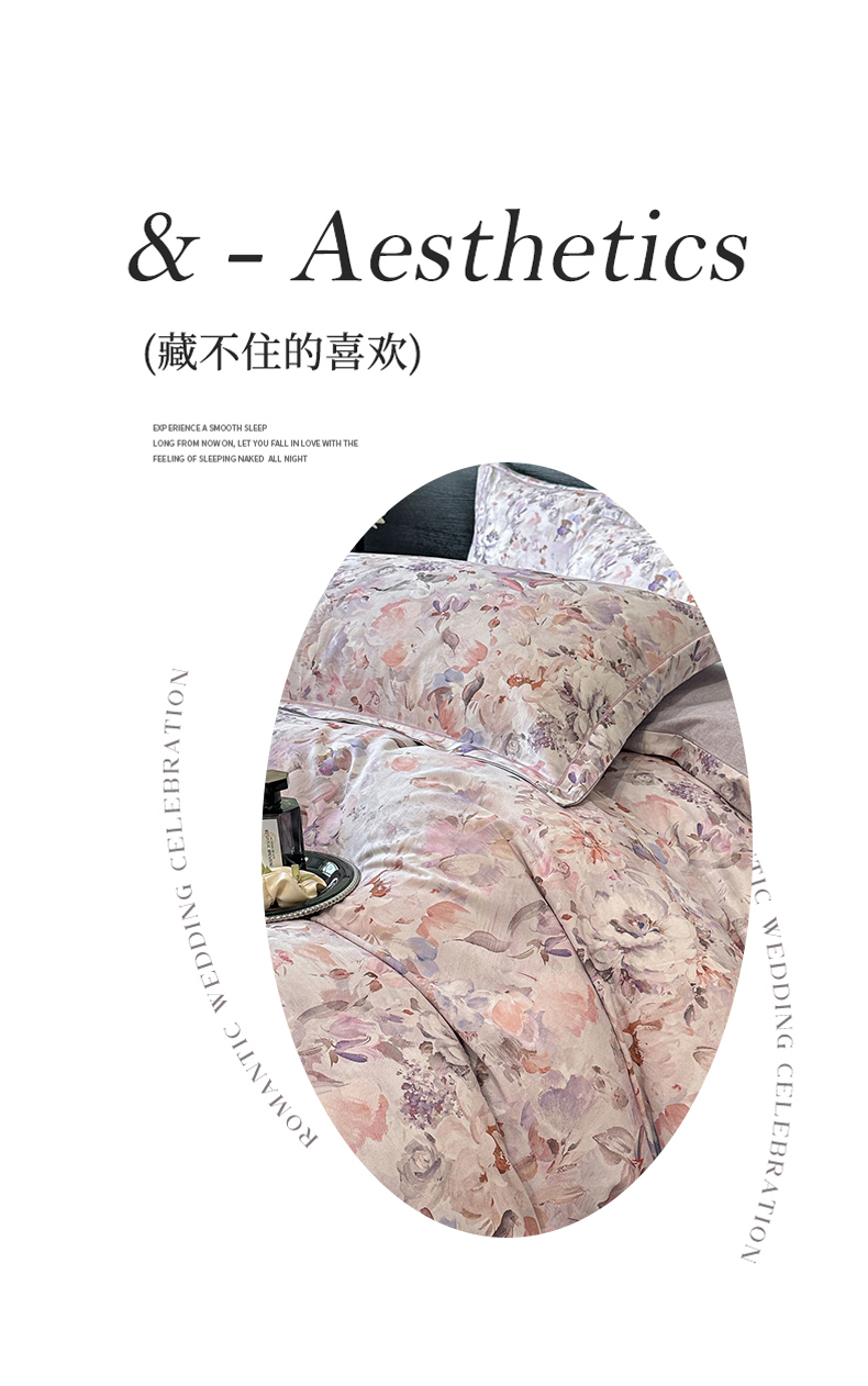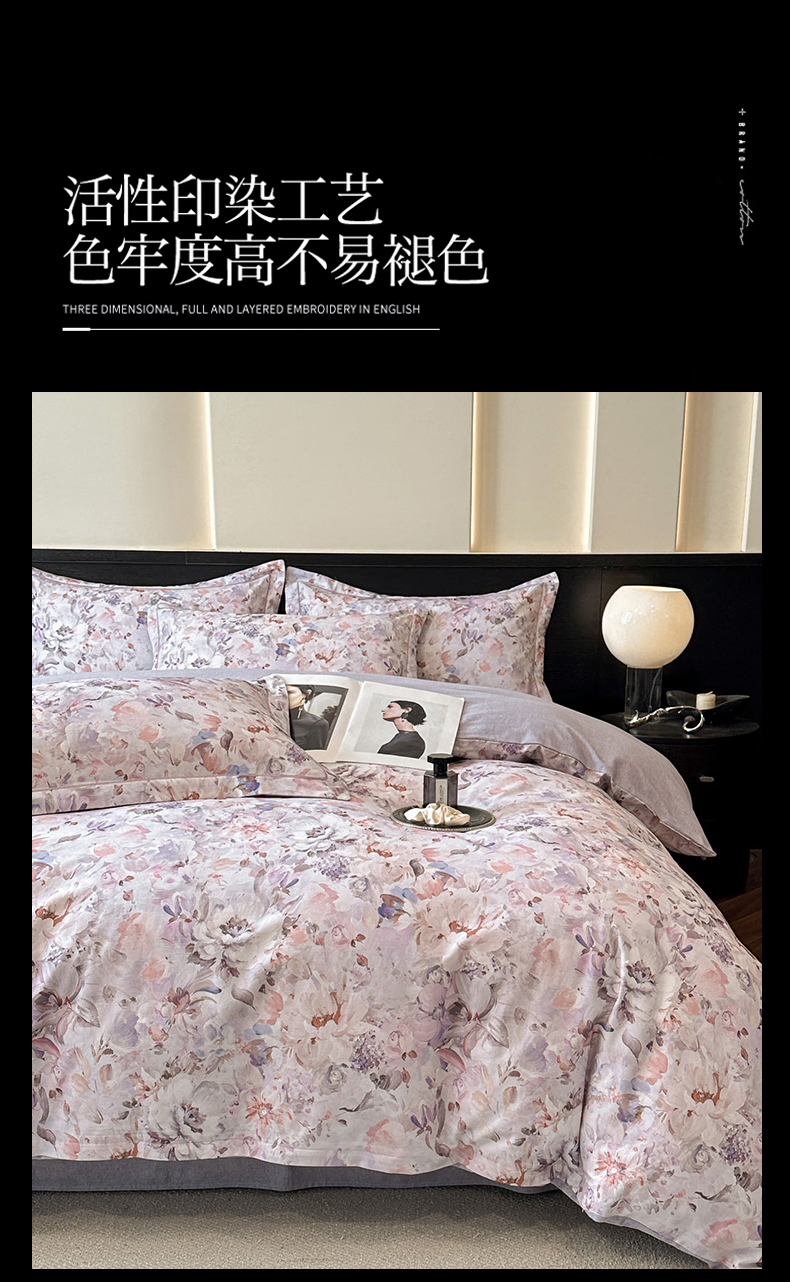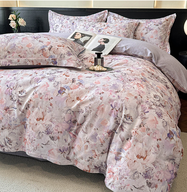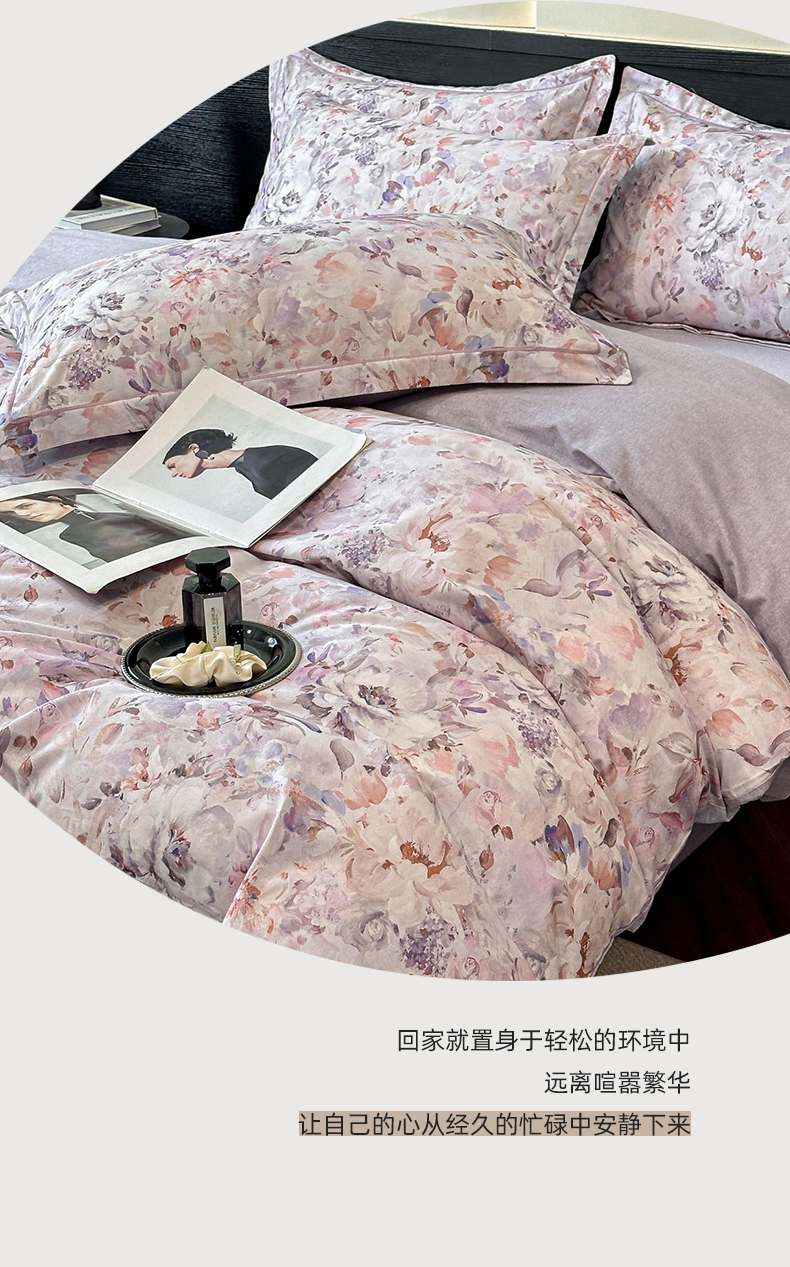 海洋家纺 2026新款100%全棉磨毛数码印花四件套加厚全棉四件套-提供买家秀 花期如梦 紫