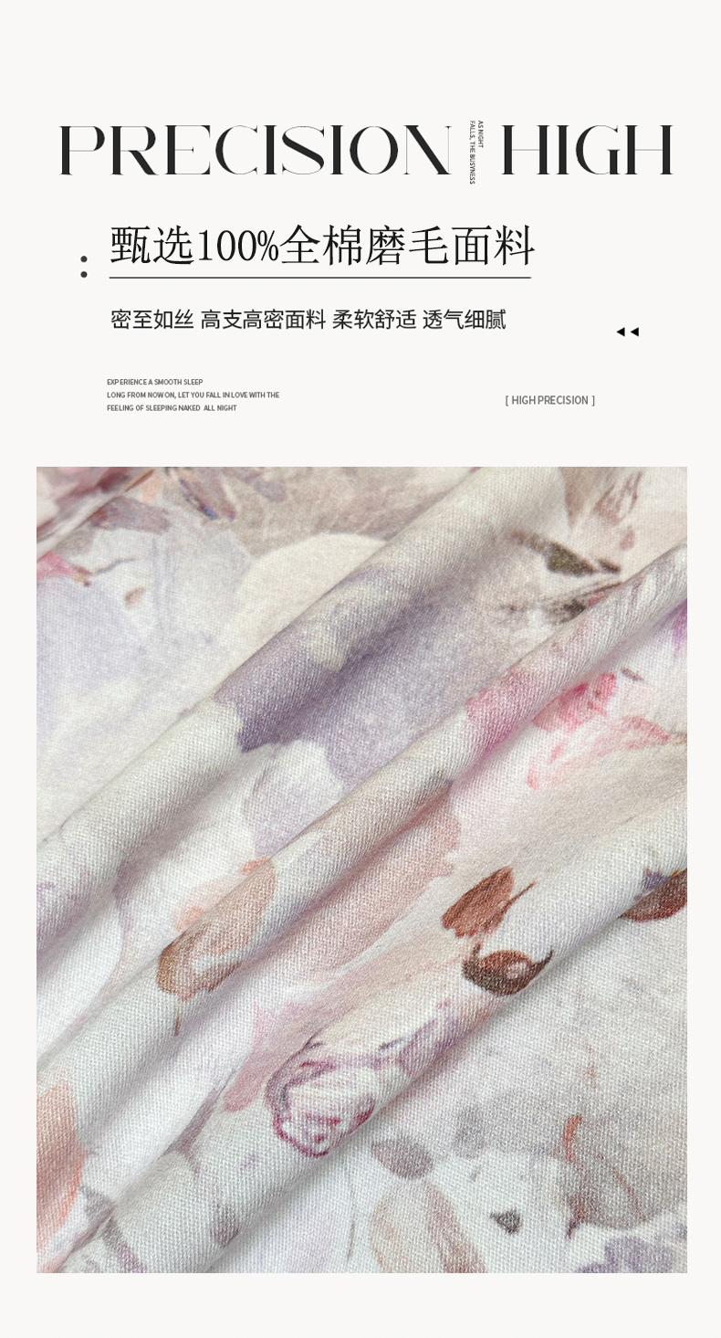 商品名称:海洋家纺 2026新款100%全棉磨毛数码印花四件套加厚全棉四件套-提供买家秀 花期如梦 紫