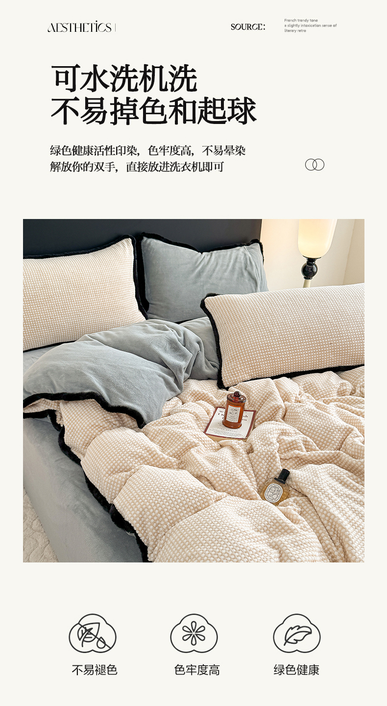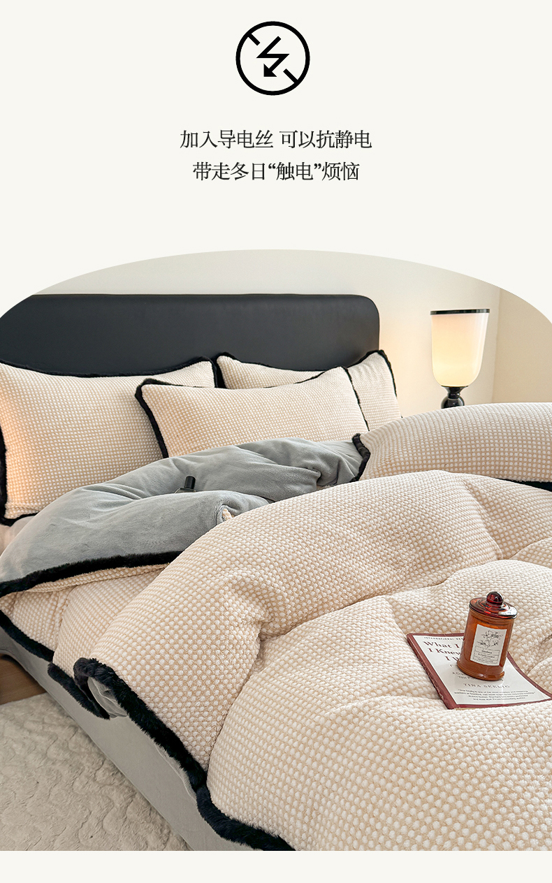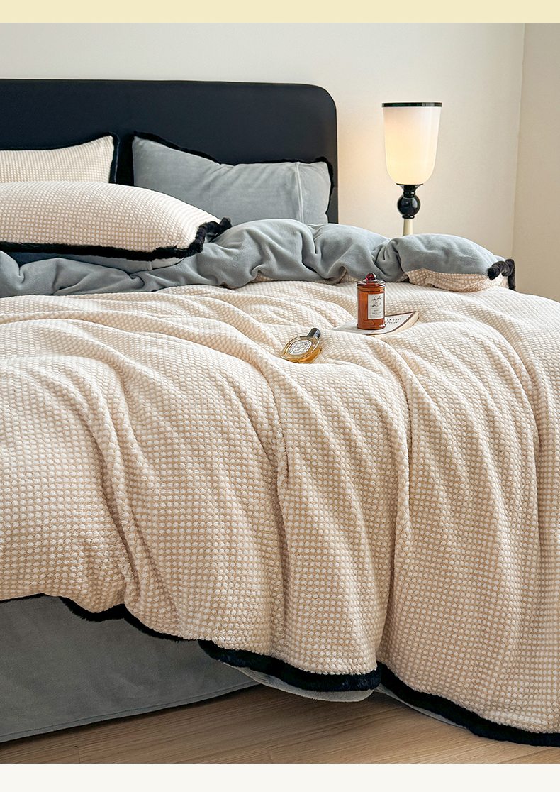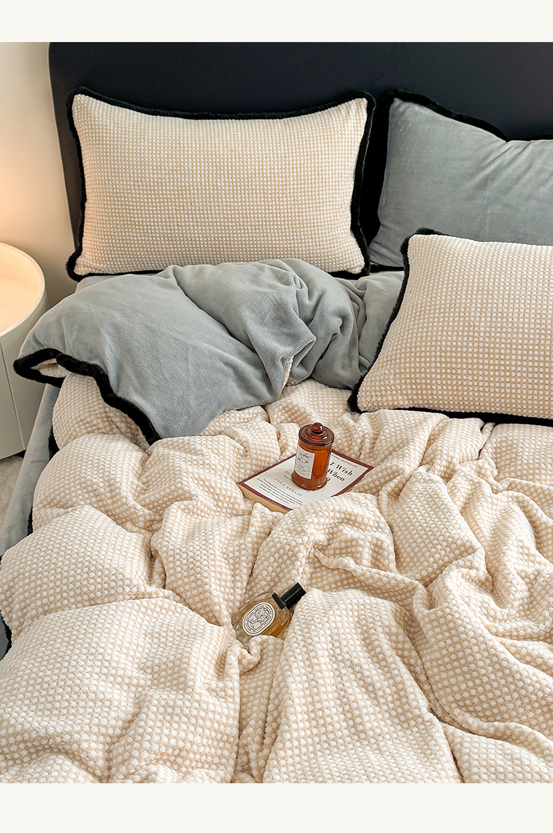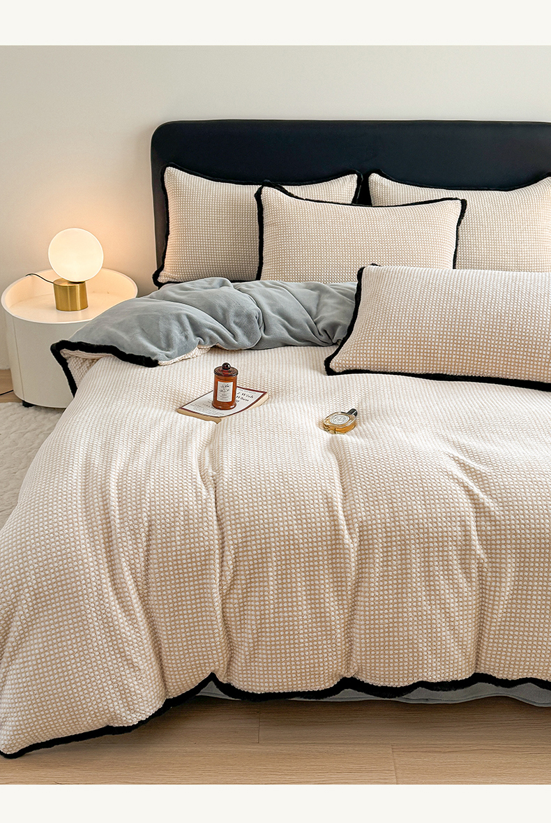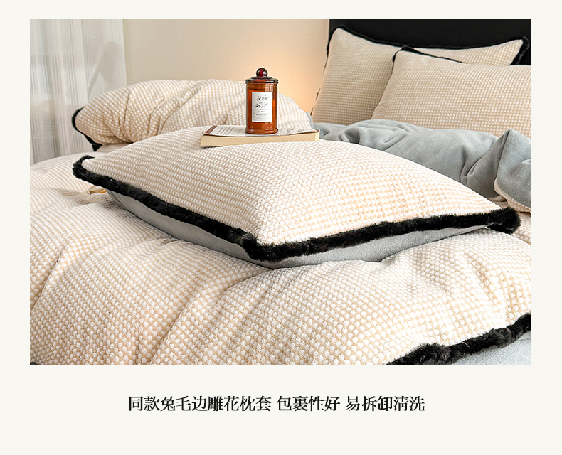 商品名称:KA家纺 2025冬兔毛边阳离子提花牛奶绒四件套 温雅系列 温雅米咖
