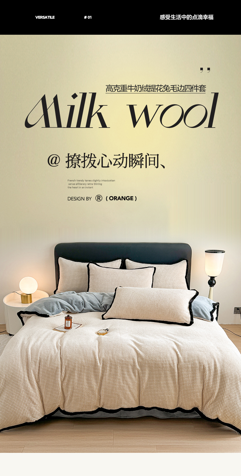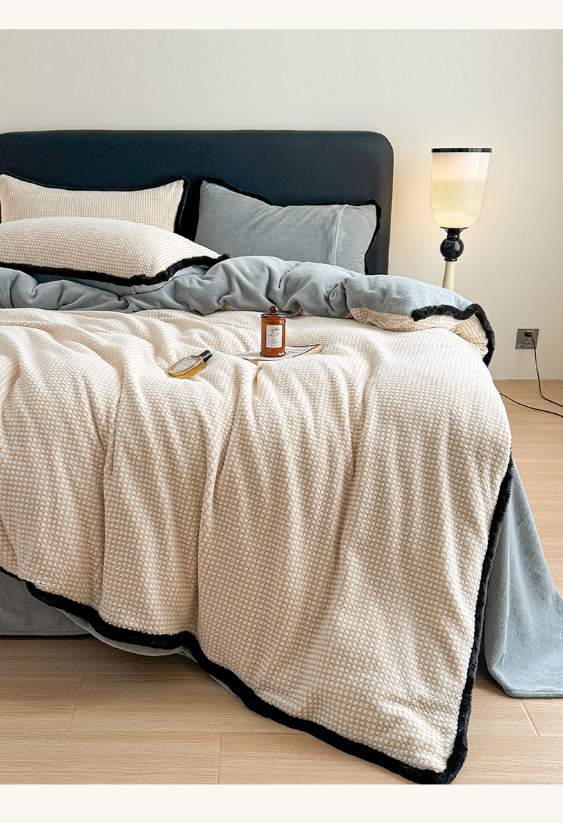 KA家纺 2025冬兔毛边阳离子提花牛奶绒四件套 温雅系列 温雅米咖