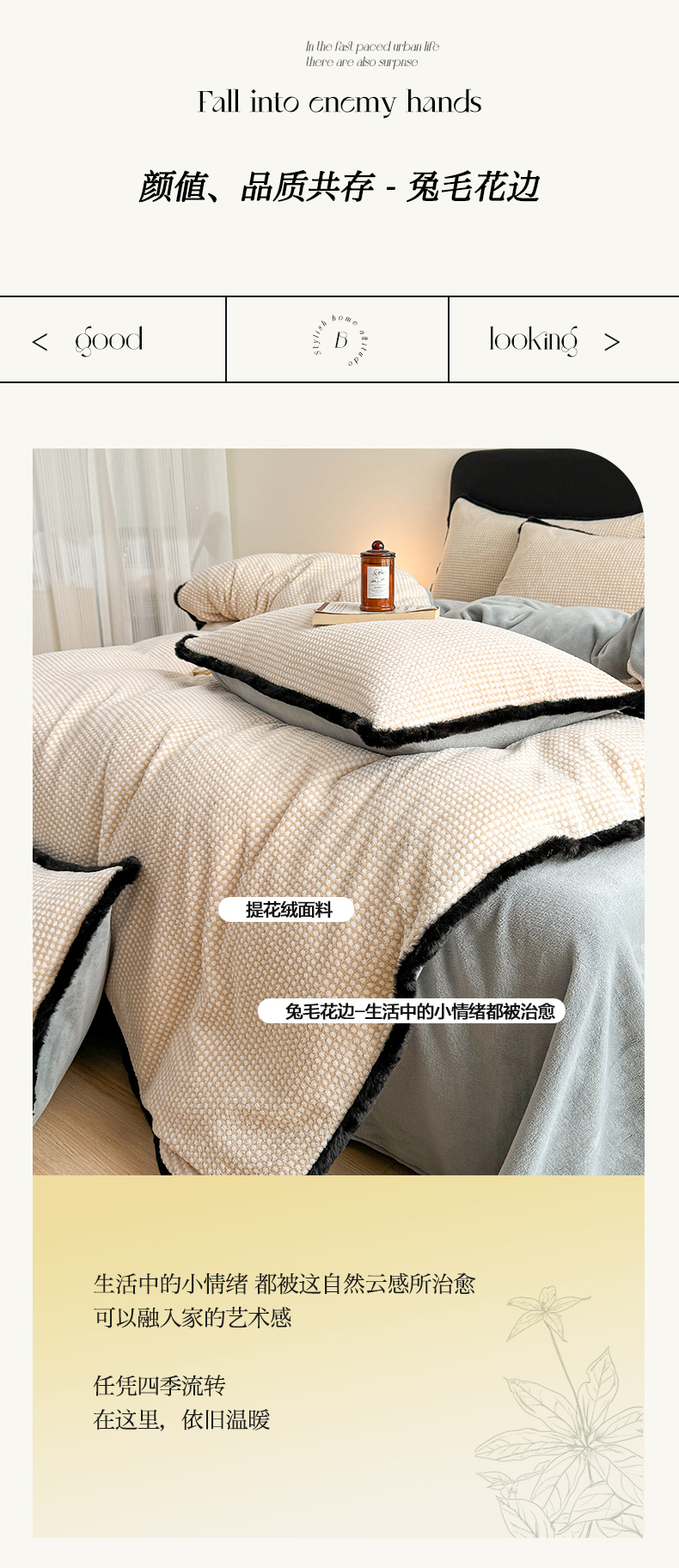 (总)KA家纺 2025新款秋冬兔毛边工艺款兔毛牛奶绒四件套,豹闪闪,蝶飞飞,红彤彤,花满满,洛可可,情浓浓,心乱乱