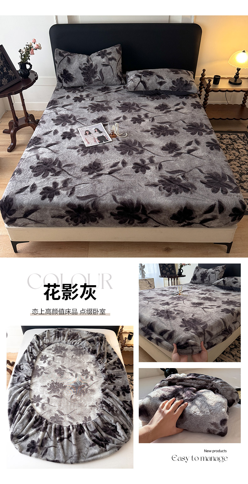商品名称:绒世界 2025秋冬加厚兔绒床笠 兔绒床笠-花影灰