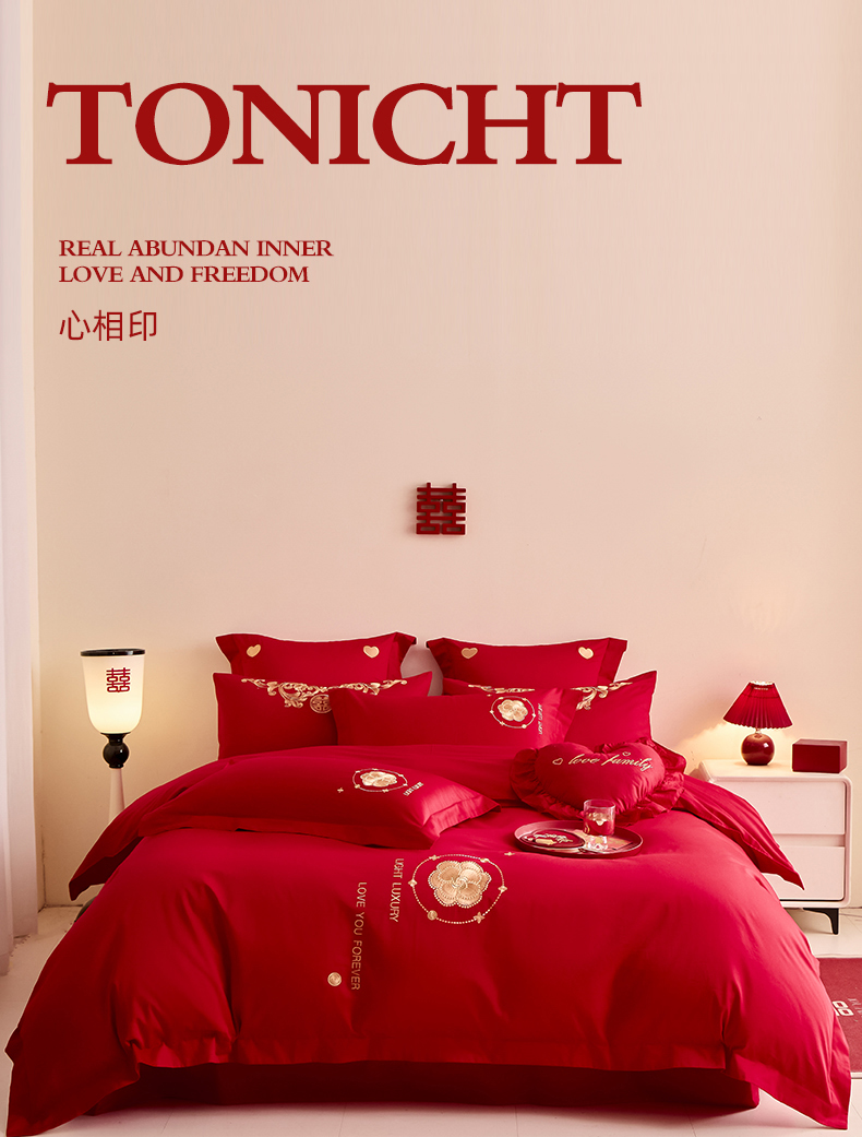 当前位置: 91家纺网 > 商品网购 > 床品套件 > 四件套 > 其它四件套 > 东方合美(原:皇家传奇) 2025新款婚庆小红书化纤系列二 心相印