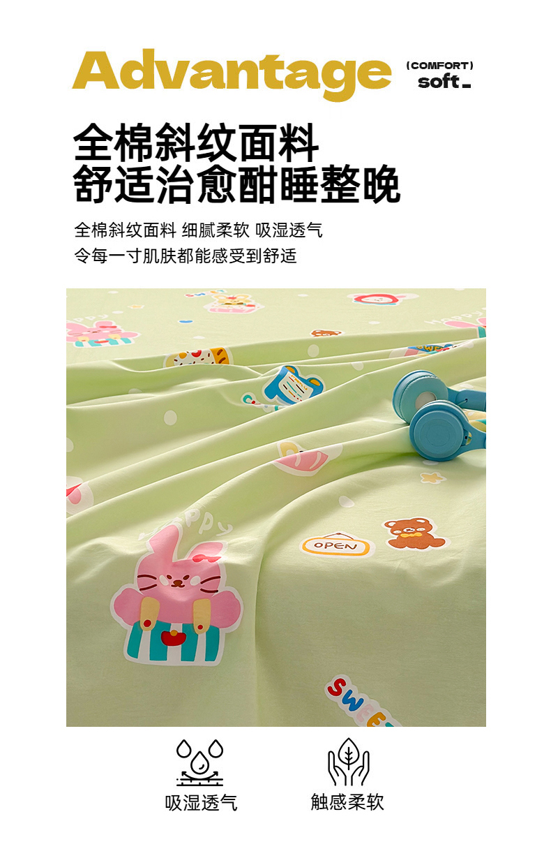 • 91家纺网 家纺一手货源 找家纺 典曼家纺 2025新款40支学生季卡通印花床单单床单床单单件 趣味熊