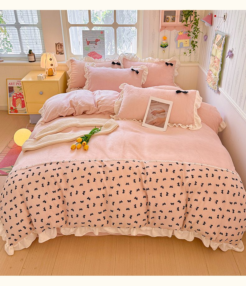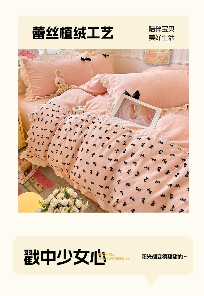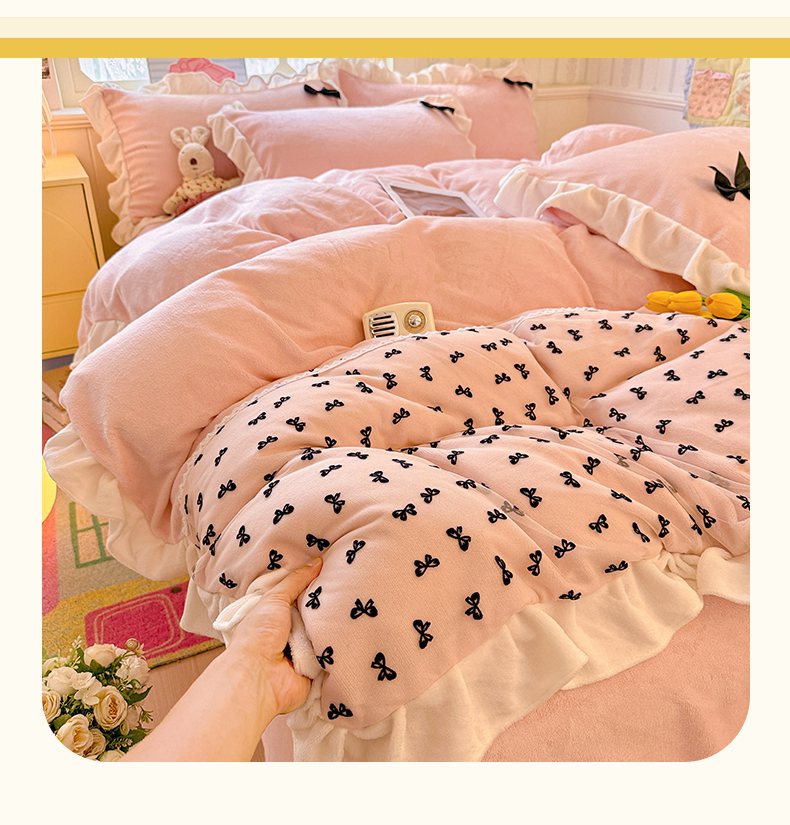 当前位置: 91家纺网 > 商品网购 > 床品套件 > 四件套 > 法莱绒四件套 > 梦之岛 2025新款韩版蝴蝶蕾丝花边牛奶绒四件套-梦语 梦语-紫