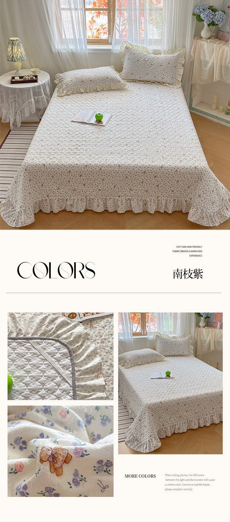 • 91家纺网 家纺一手货源 找家纺 库里梦家纺 2025网红直播爆款亚麻木棉皱皱纱夹棉床盖 南枝紫