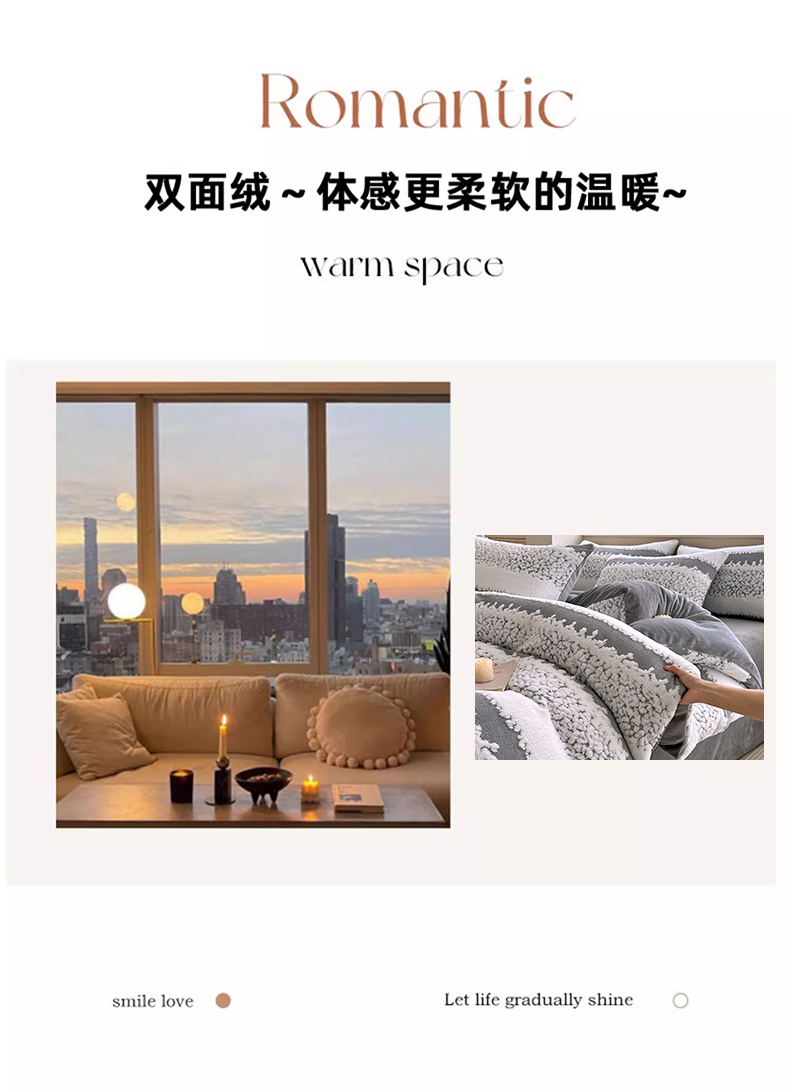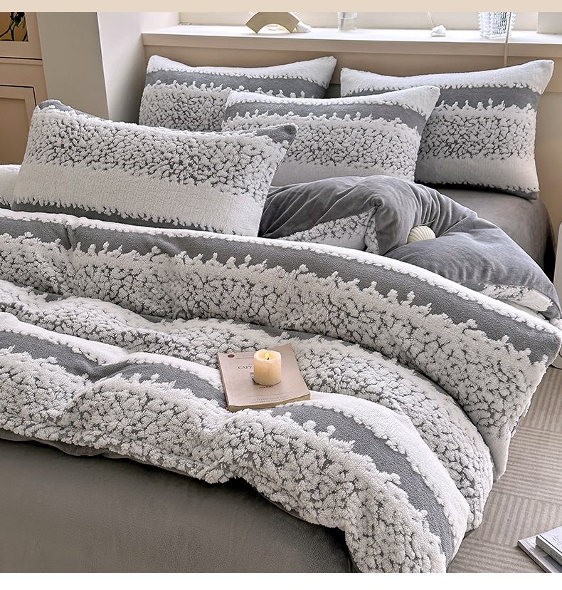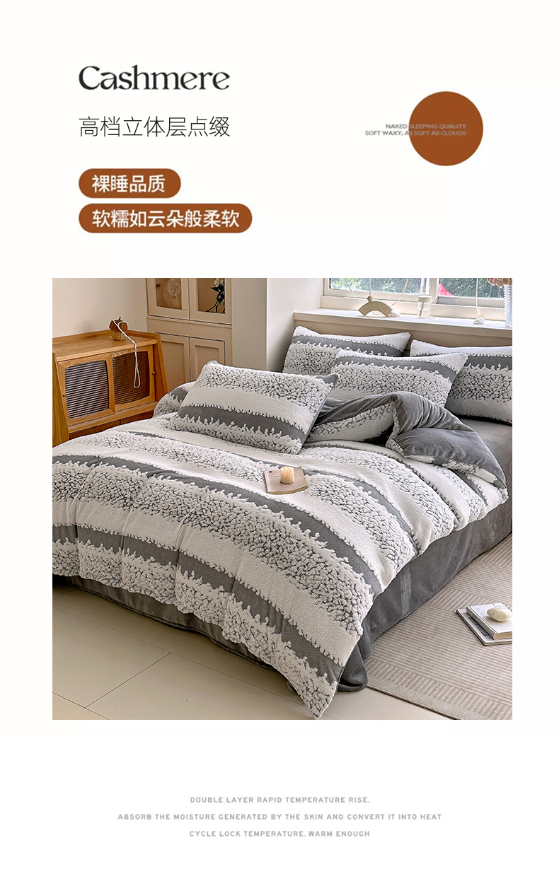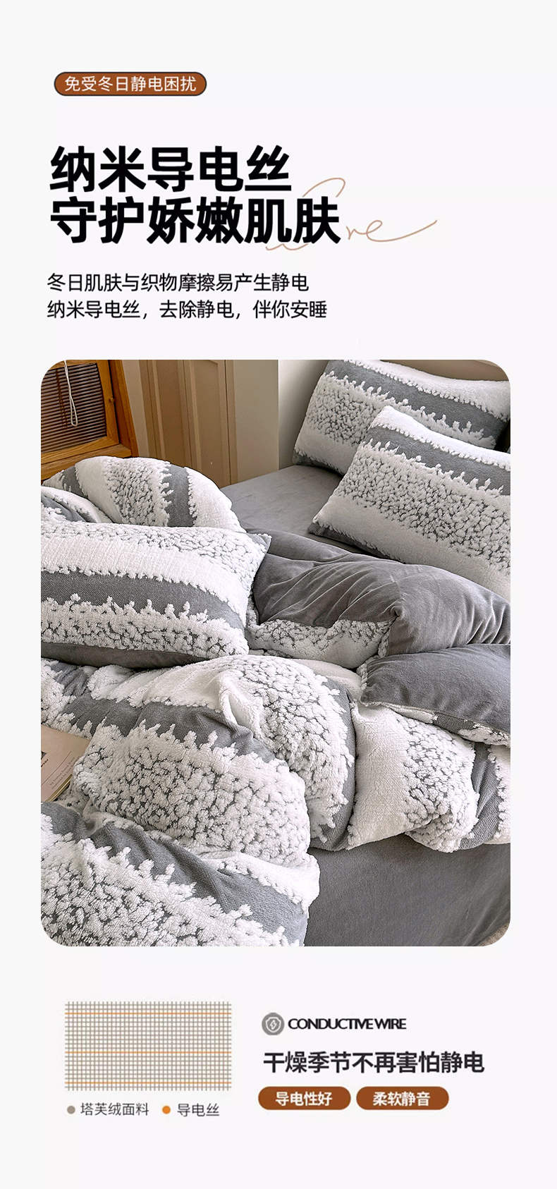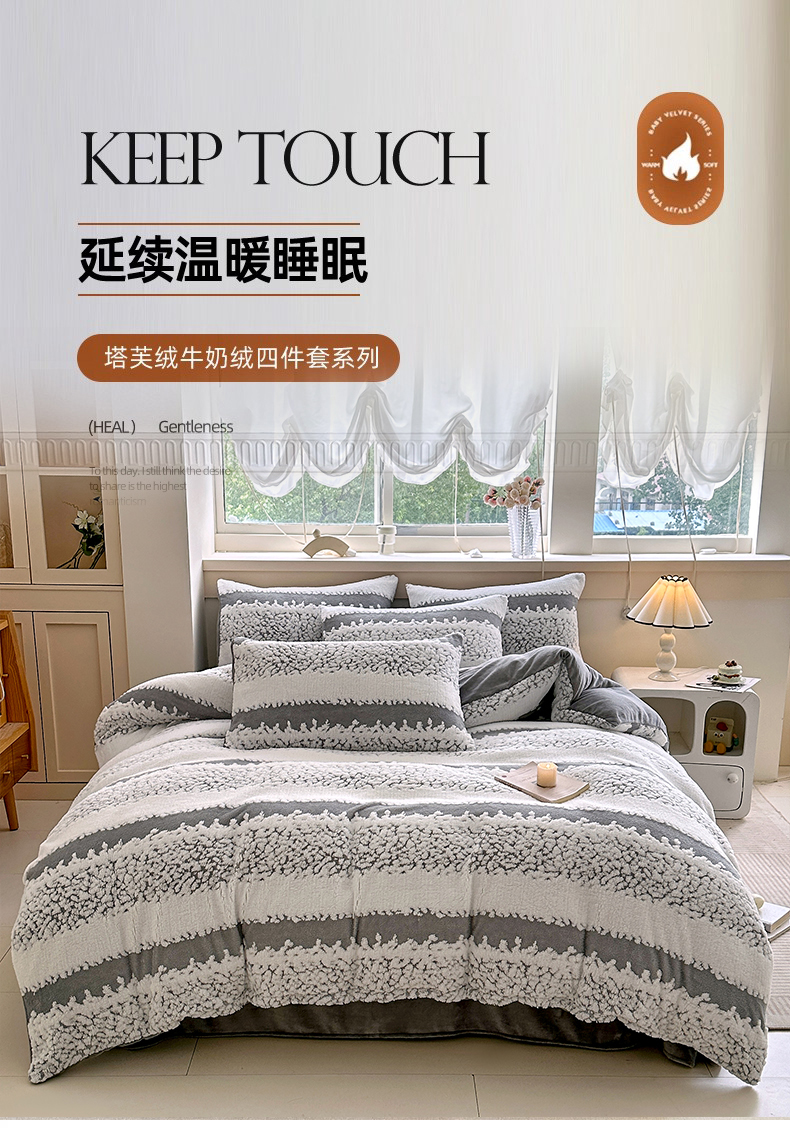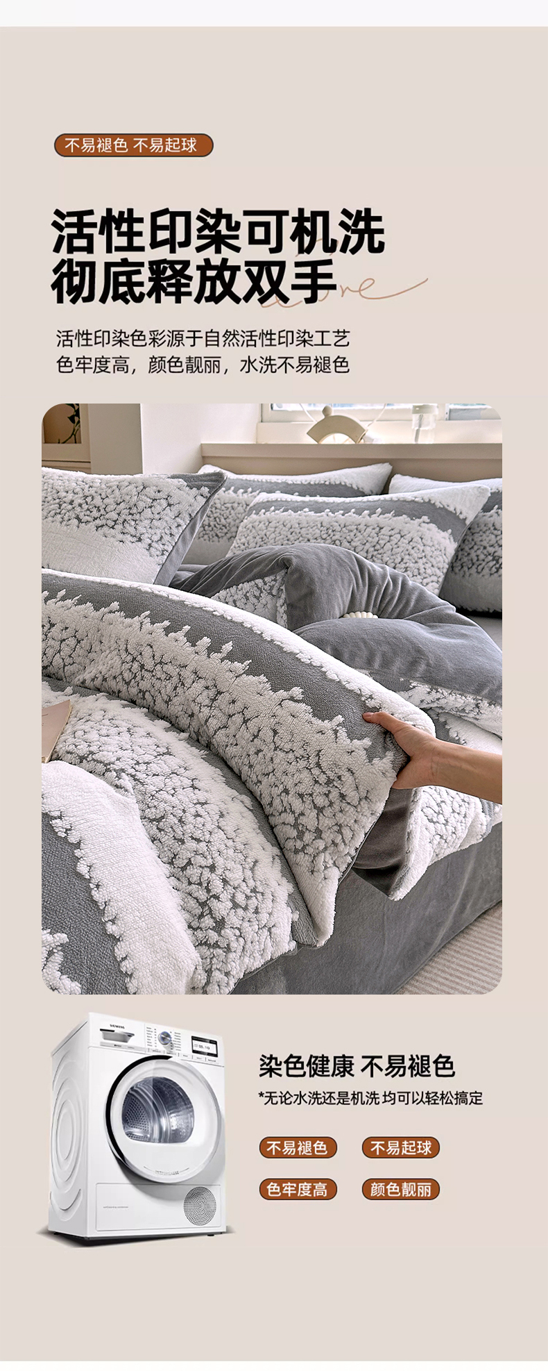 当前位置: 91家纺网 > 商品网购 > 床品套件 > 四件套 > 其它四件套 > 家贝爱 2025秋冬新款高克重塔芙绒提花四件套 扶摇-灰