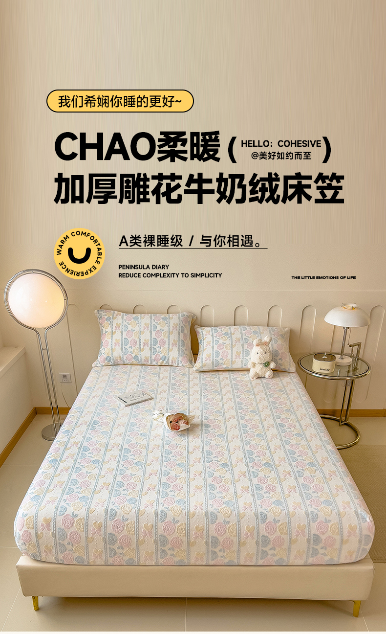 当前位置: 91家纺网 > 商品网购 > 床品套件 > 四件套 > 牛奶绒四件套 > 摩妮卡 2025新款小清新雕花牛奶绒床笠单床笠床笠三件套 组合图仅供展示不可下单