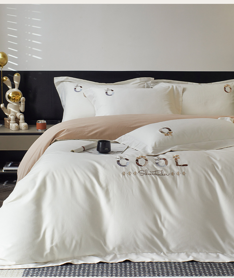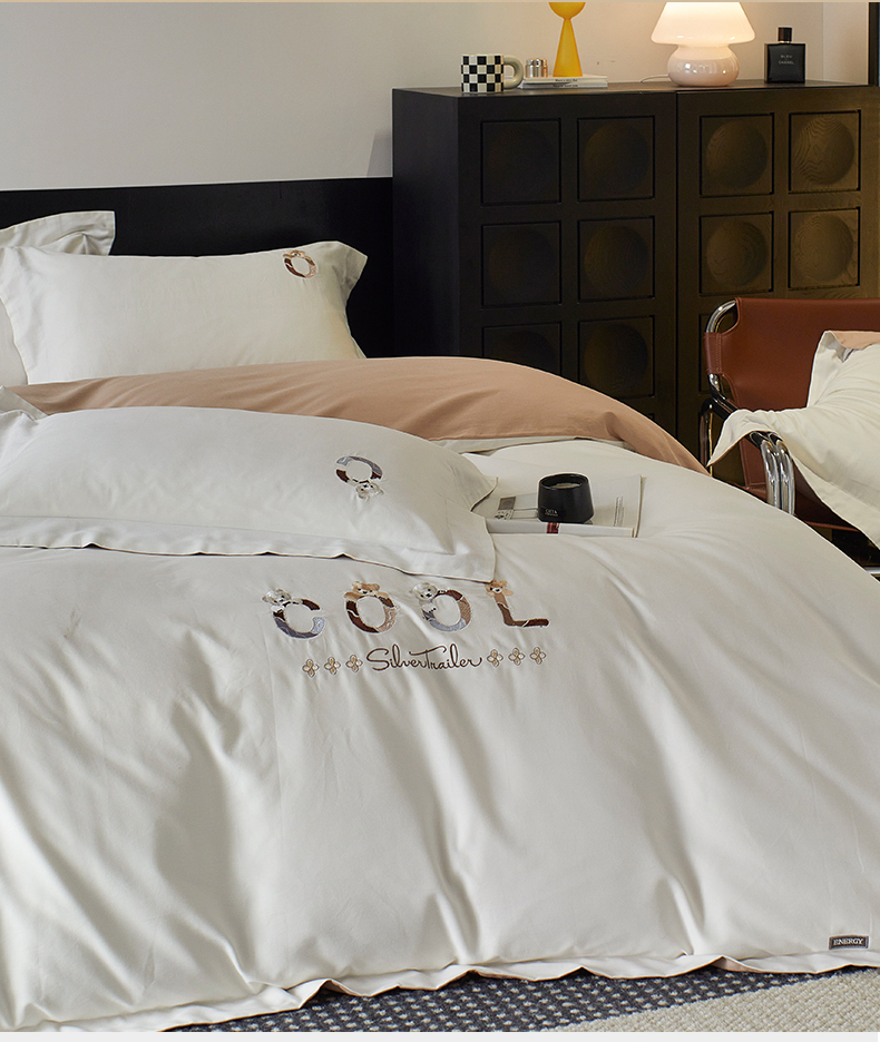 鼎飞家纺 2025新款全棉磨毛刺绣四件套系列-梵 梵-奶油白