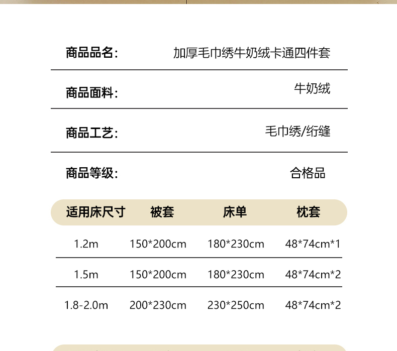 商品名称:(总)KT猫直营店 2025新款高克重大版毛巾绣牛奶绒卡通四件套