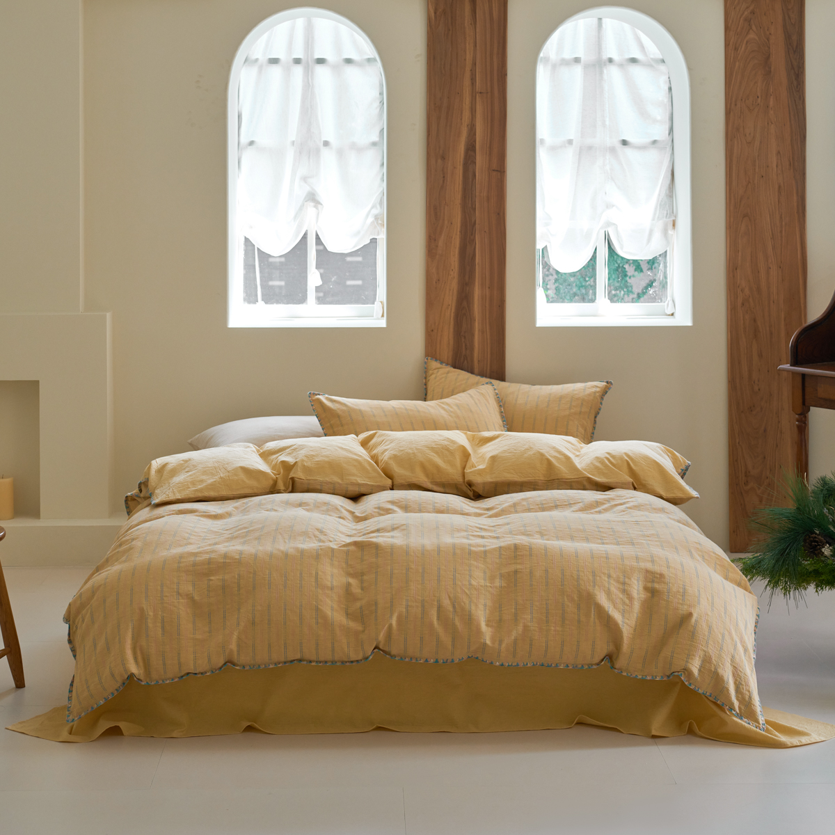 当前位置: 91家纺网 > 商品网购 > 床品套件 > 四件套 > 其它四件套 > 洋铭区(原狠狠爱) 2025新款慕斯VS早安水洗棉彩边色织提花四件套 慕斯浅奶黄