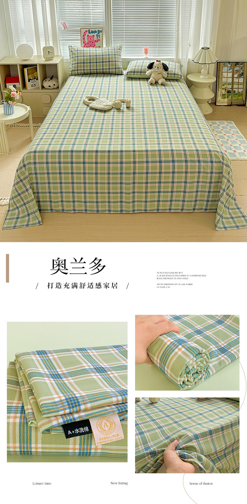 商品名称:南通菲度家纺 2025新款ins博主风软糯糯亲肤印花热款纯色格子无印风水洗棉时尚单床单 开罗