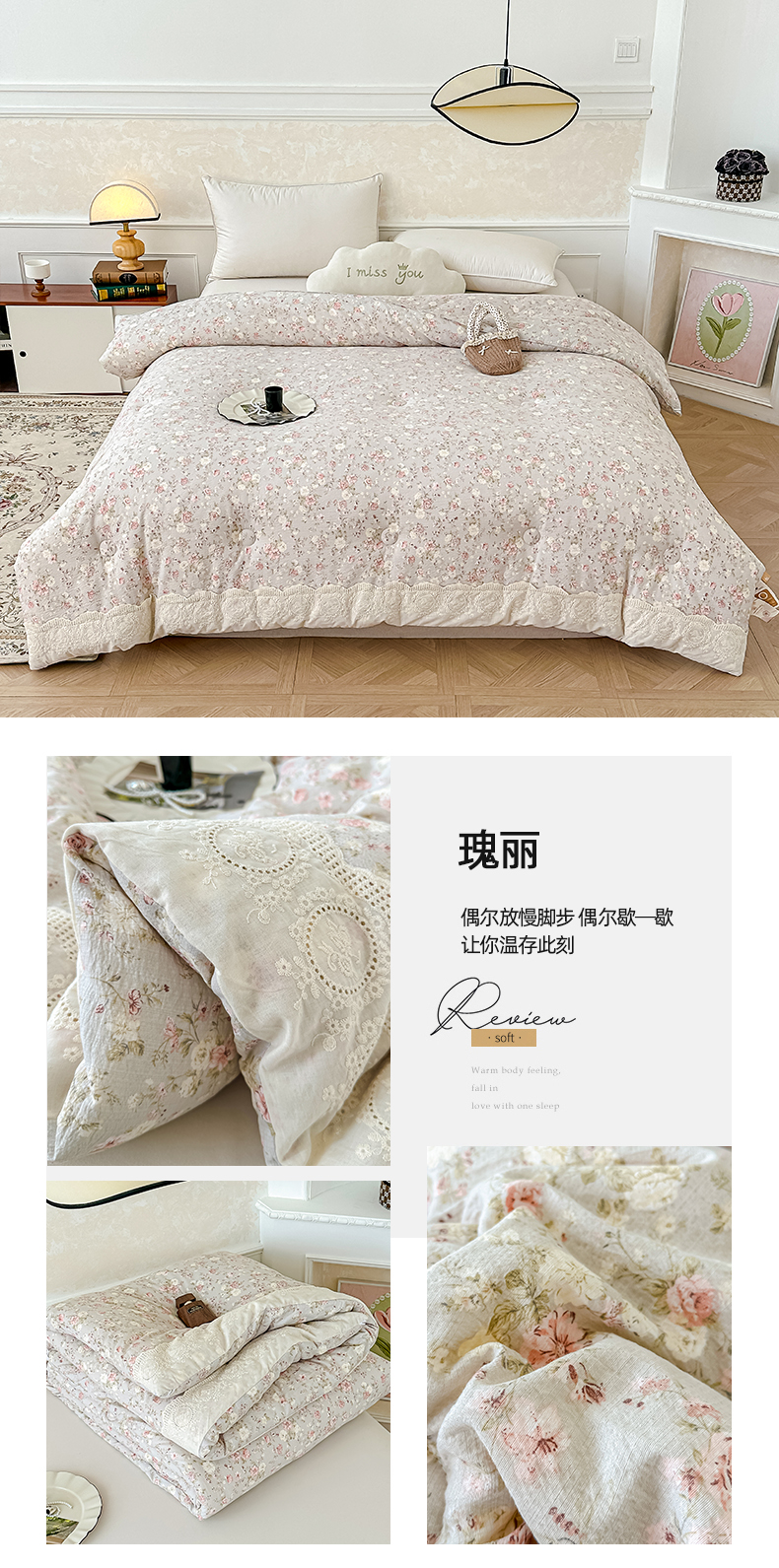 • 91家纺网 家纺一手货源 找家纺 (总)芯恋 25年新款亚麻风全棉花边云感冬被四季被加厚冬被,苍兰,瑰丽,花弄影,花影,蒹葭,落霞,晚秋,云清