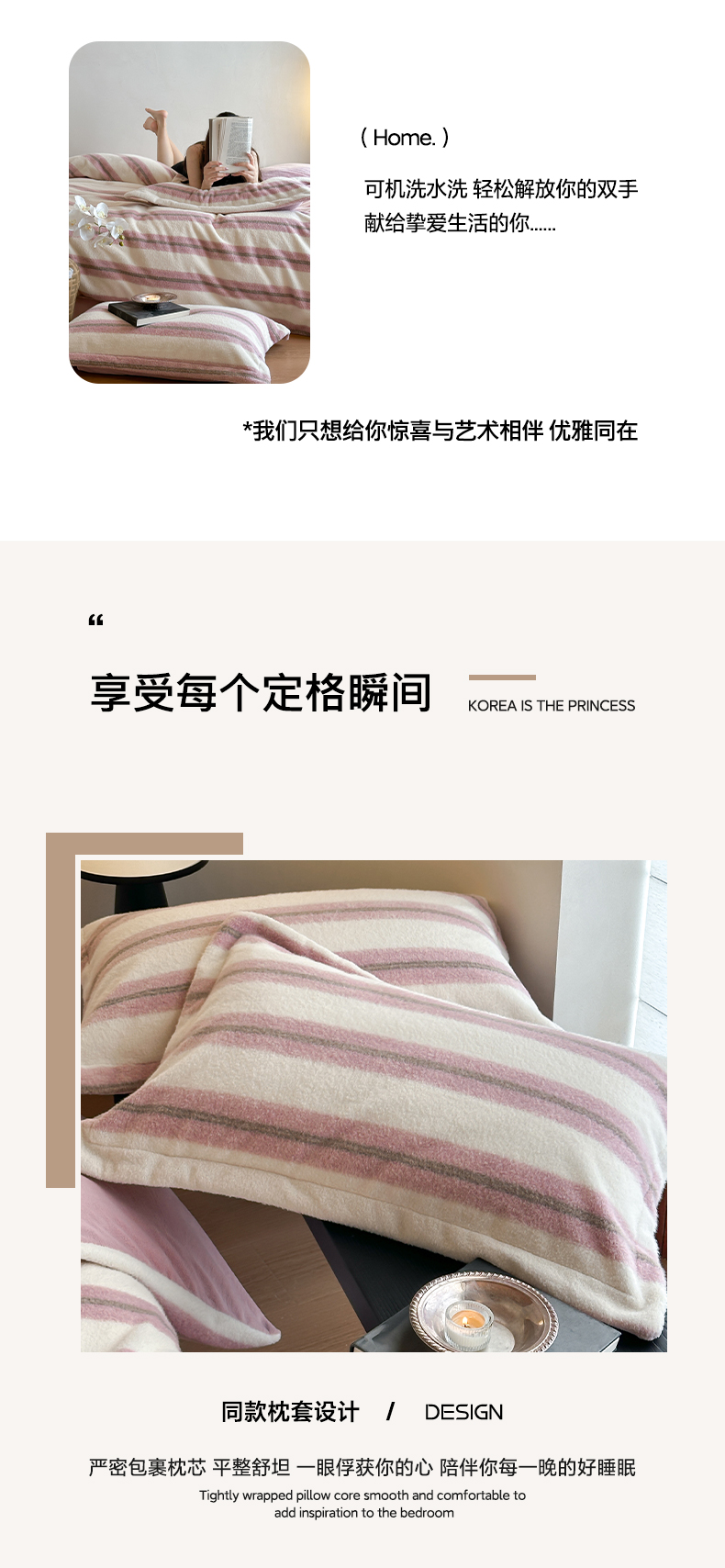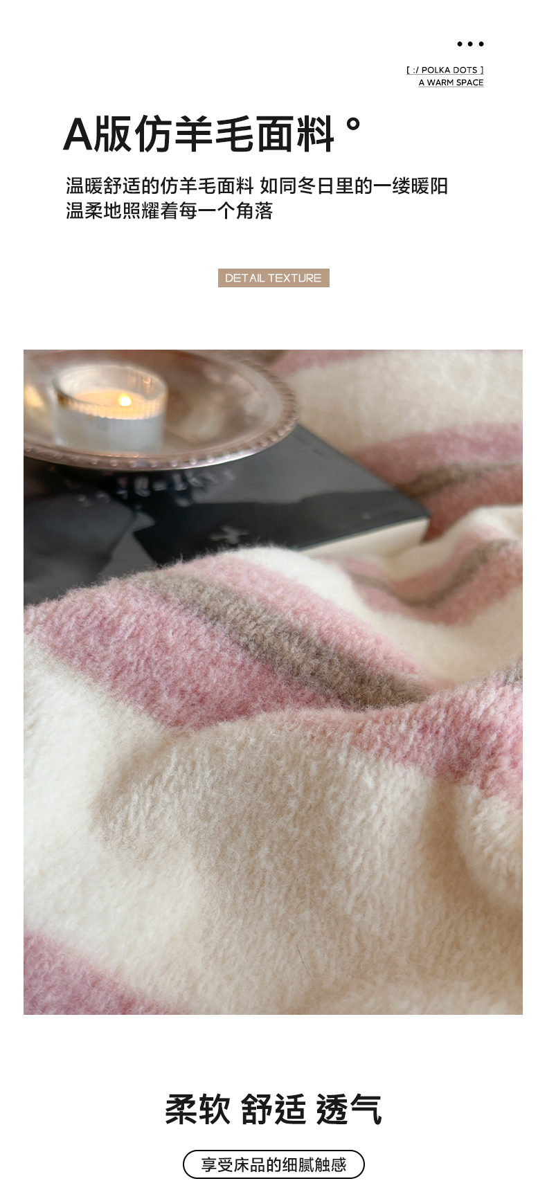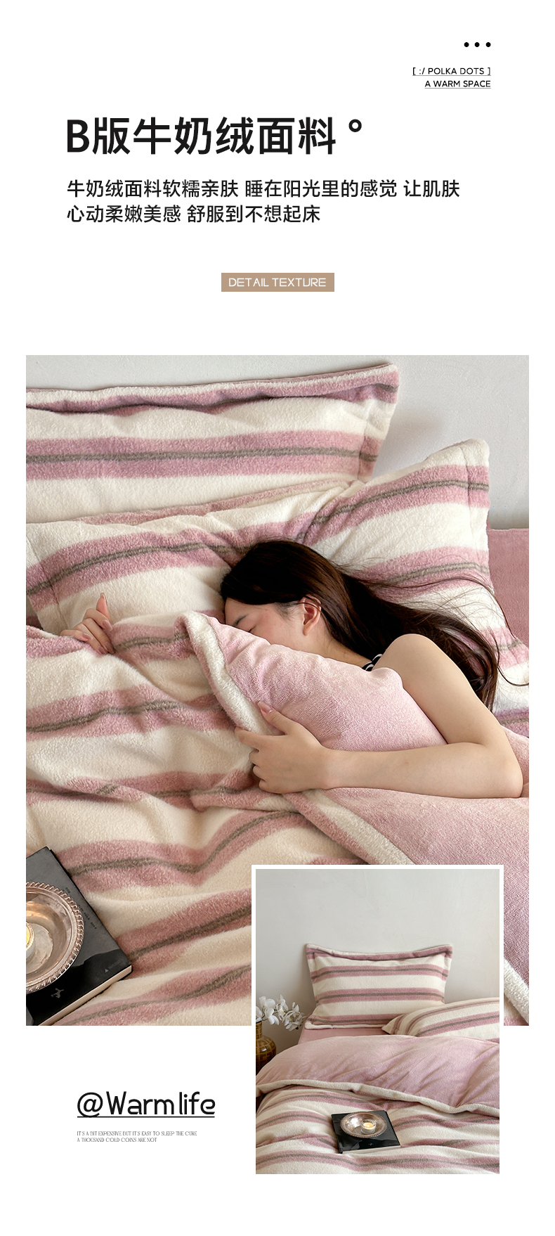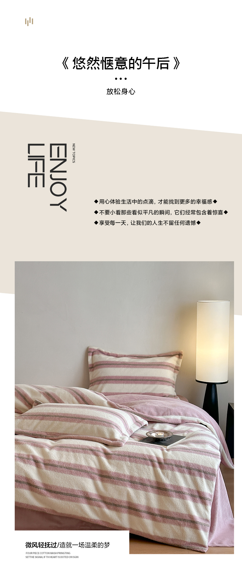 商品名称:凯罗 2025新款仿羊绒四件套高克重牛奶绒四件套仿羊绒格子条纹四件套 意韵-粉
