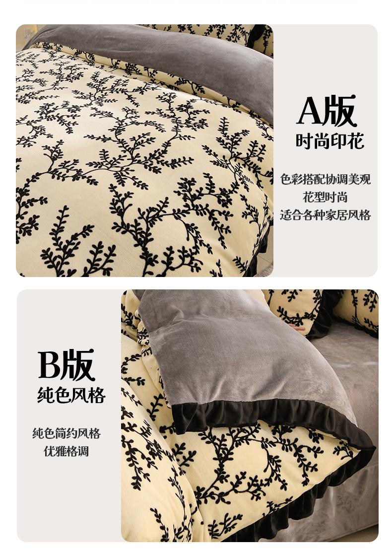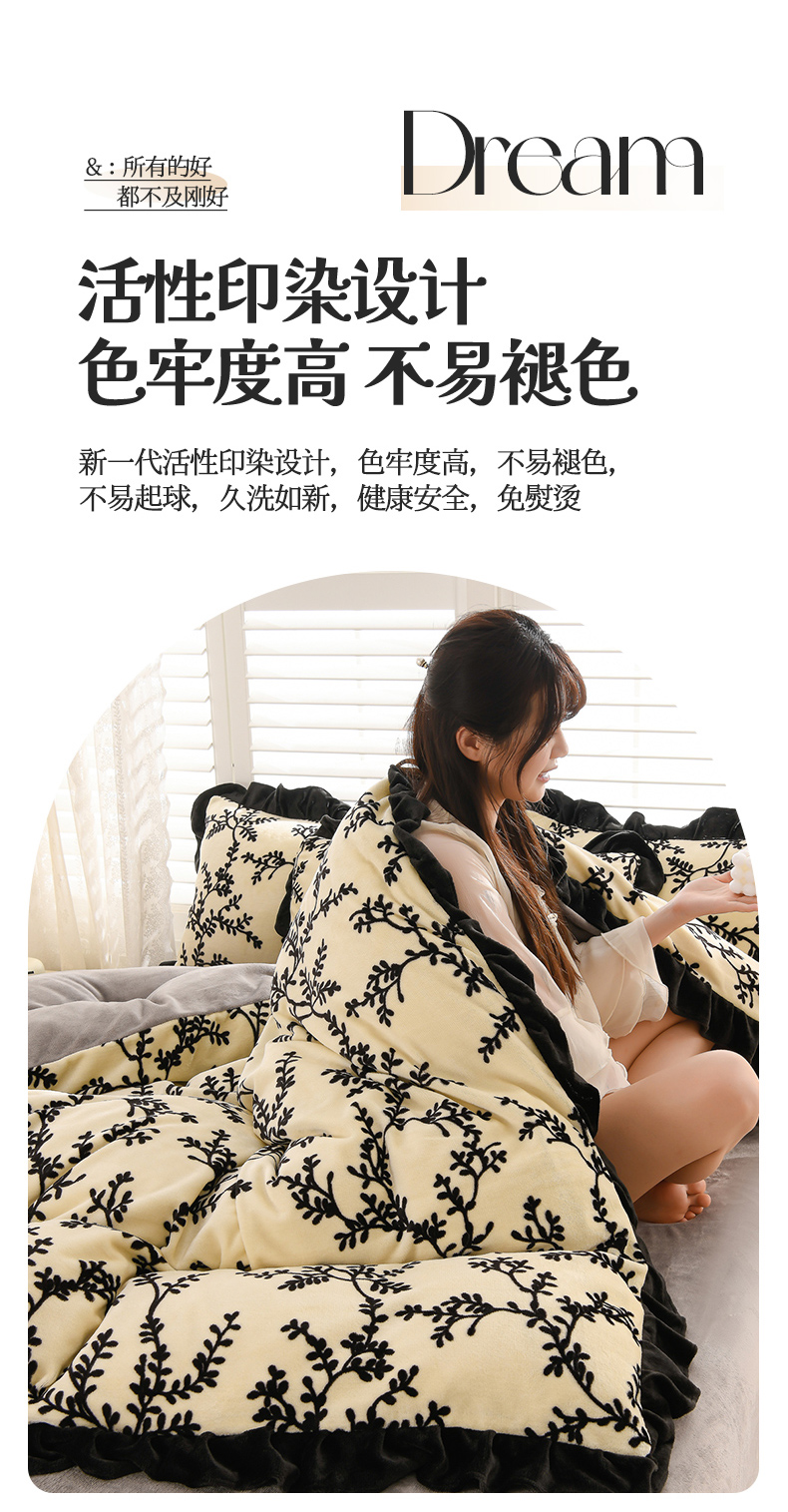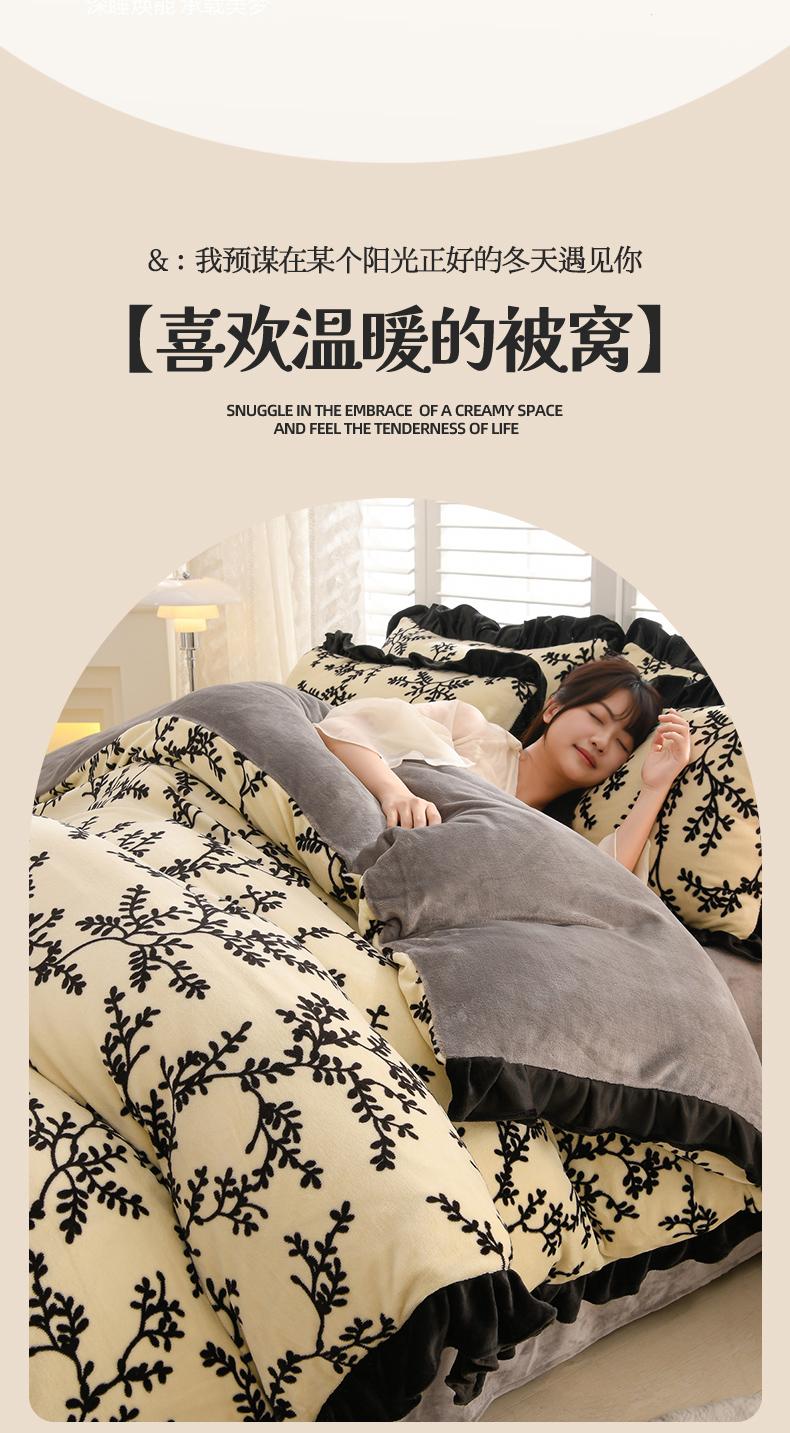 商品名称:紫月轩家纺 2025新款韩版牛奶绒花边款四件套 素枝