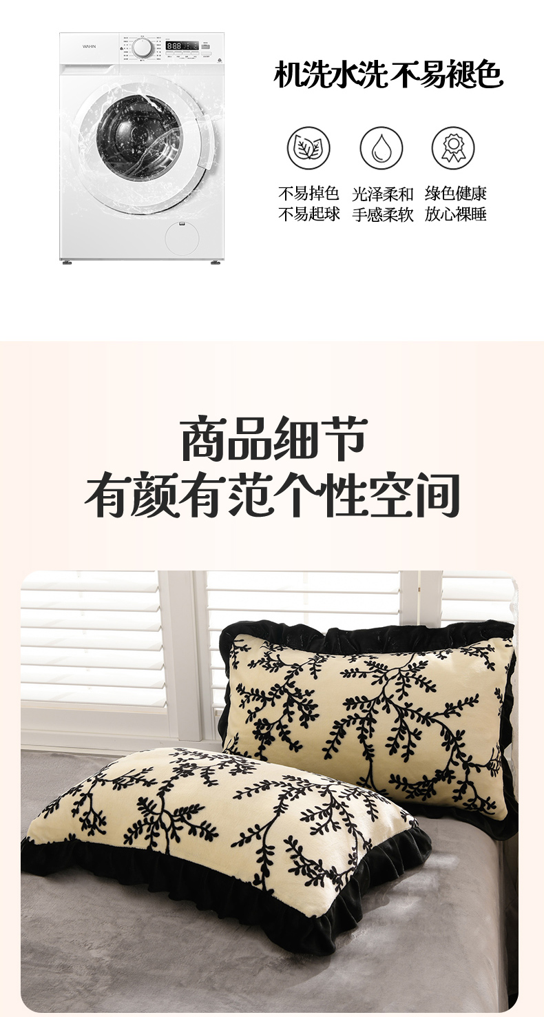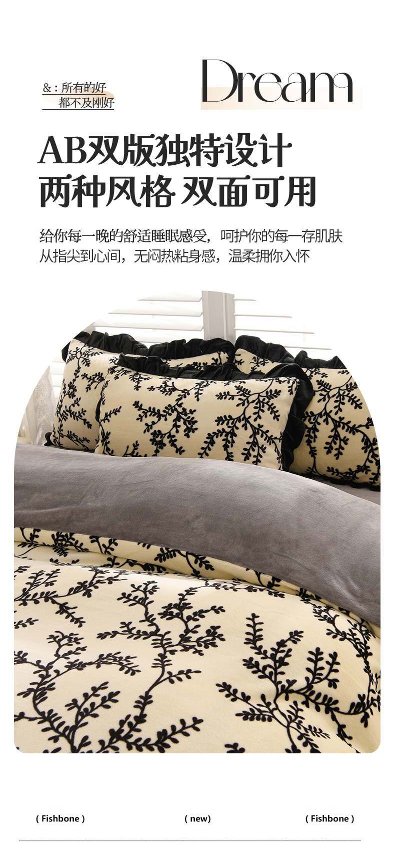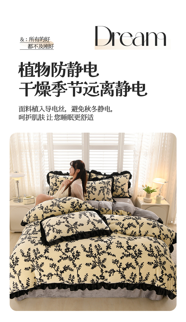 商品名称:紫月轩家纺 2025新款韩版牛奶绒花边款四件套 素枝