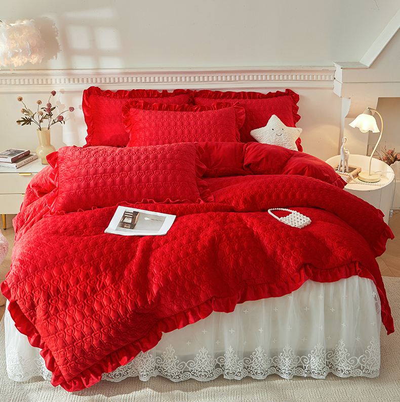 怡源梦 2025新款牛奶绒床裙四件套-甜心公主系列 大红色