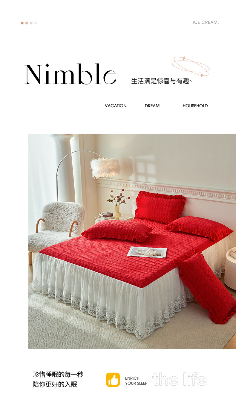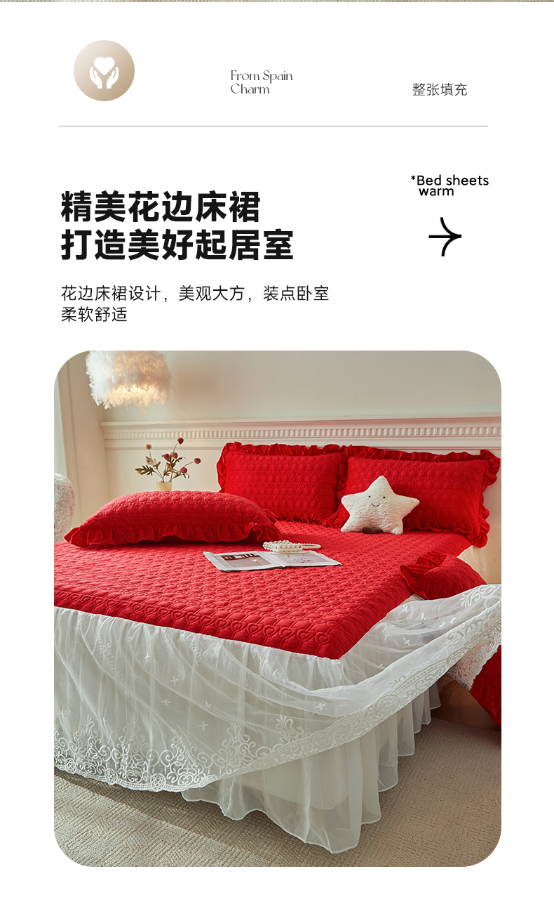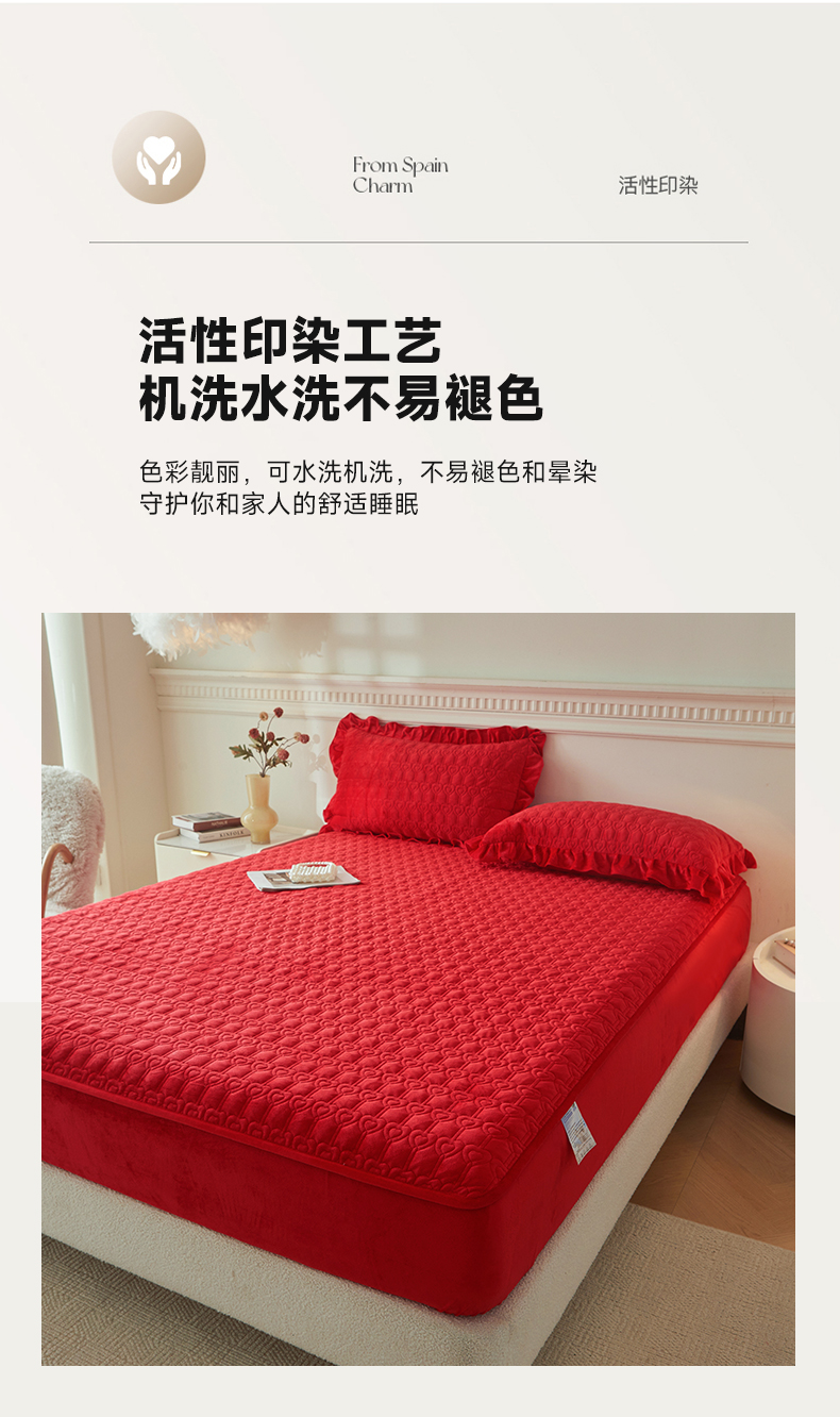 (总)怡源梦 2025新款夹棉床笠-甜心公主系列,大红色,粉玉色,灰色,咖色,绿色,米白色,紫色
