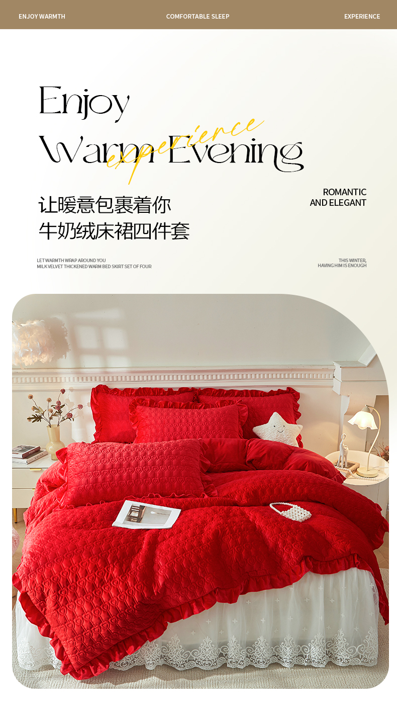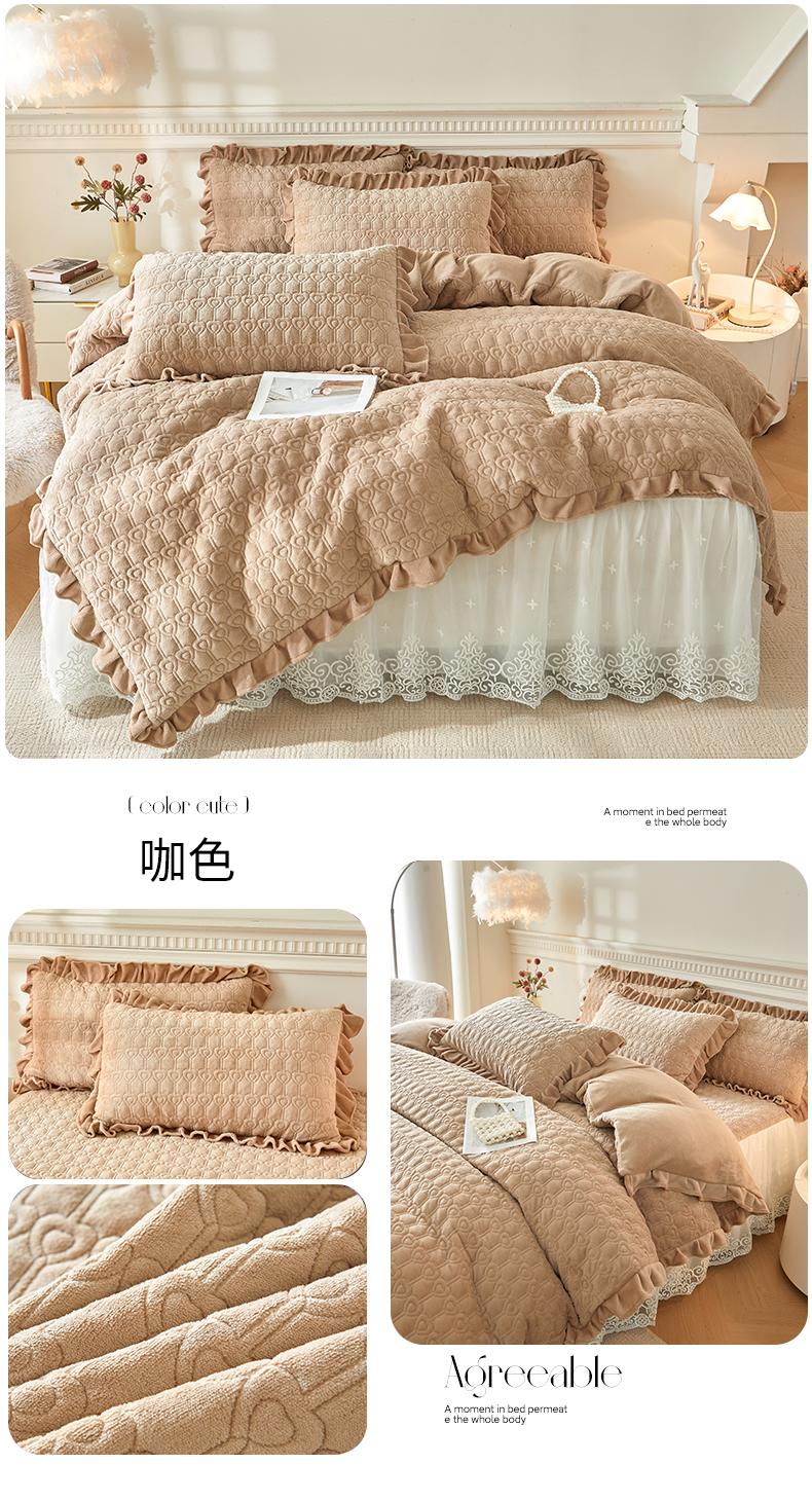 (总)怡源梦 2025新款牛奶绒床裙四件套-甜心公主系列,米白色,大红色,粉玉色,灰色,咖色,绿色,紫色