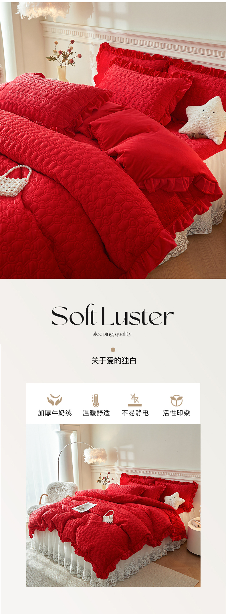 商品名称:怡源梦 2025新款牛奶绒床裙四件套-甜心公主系列 大红色
