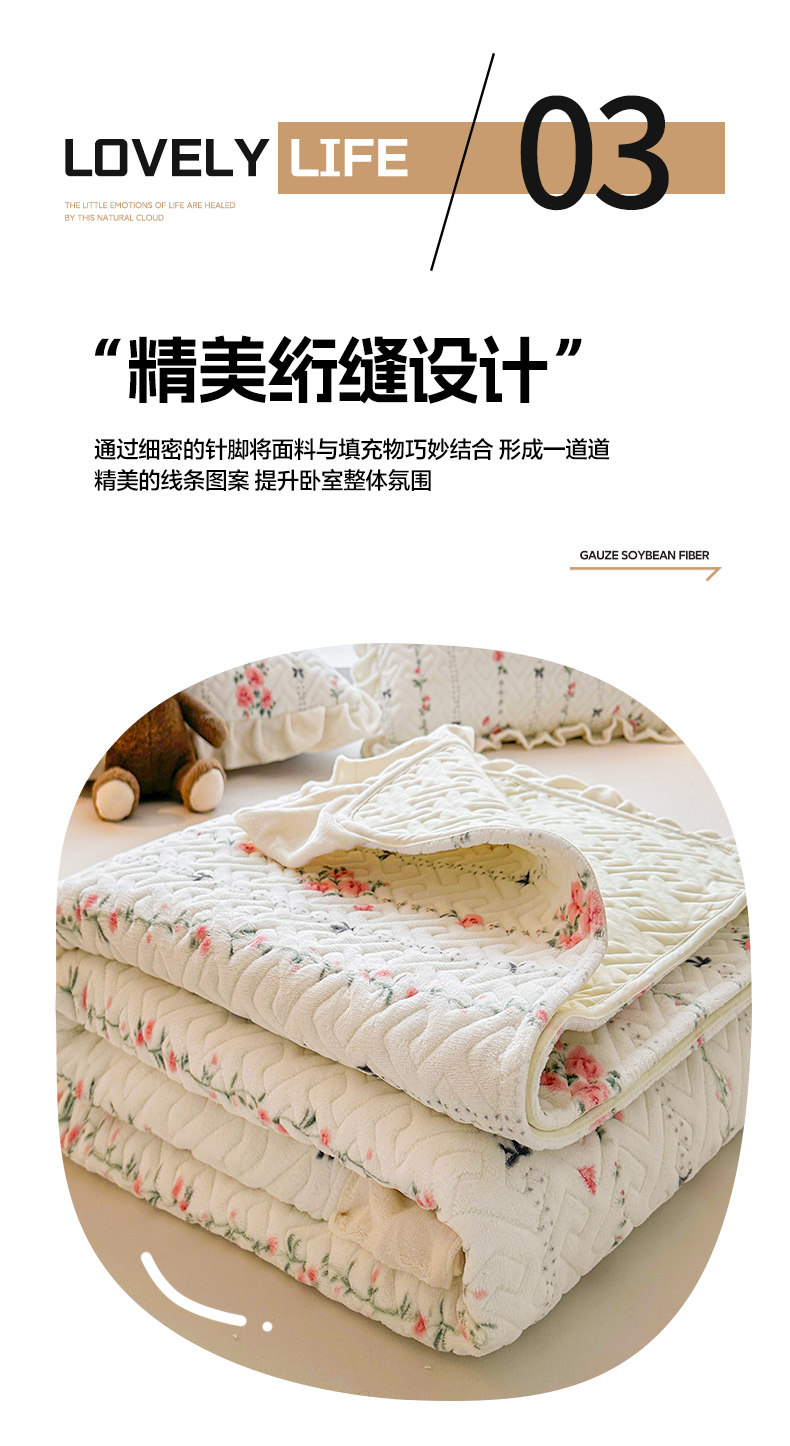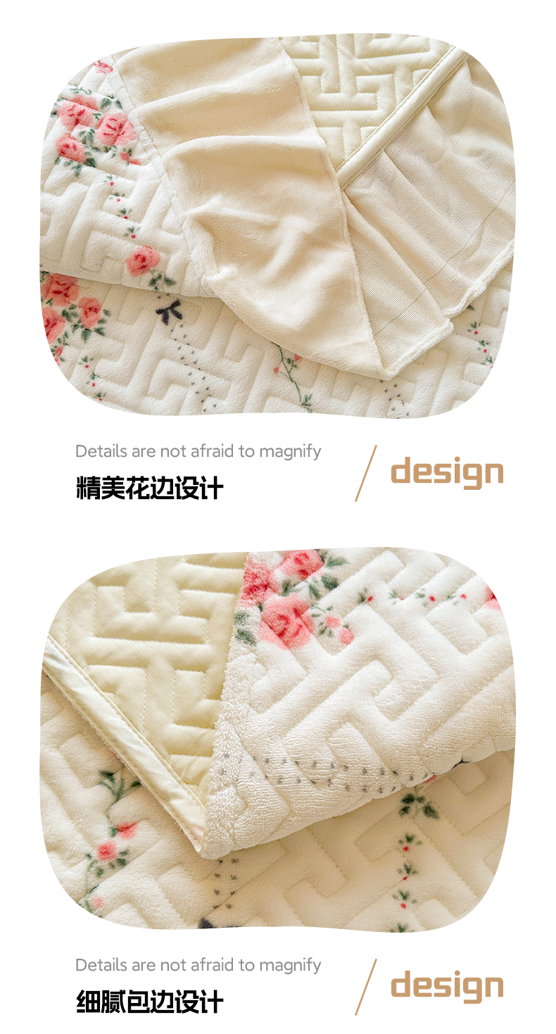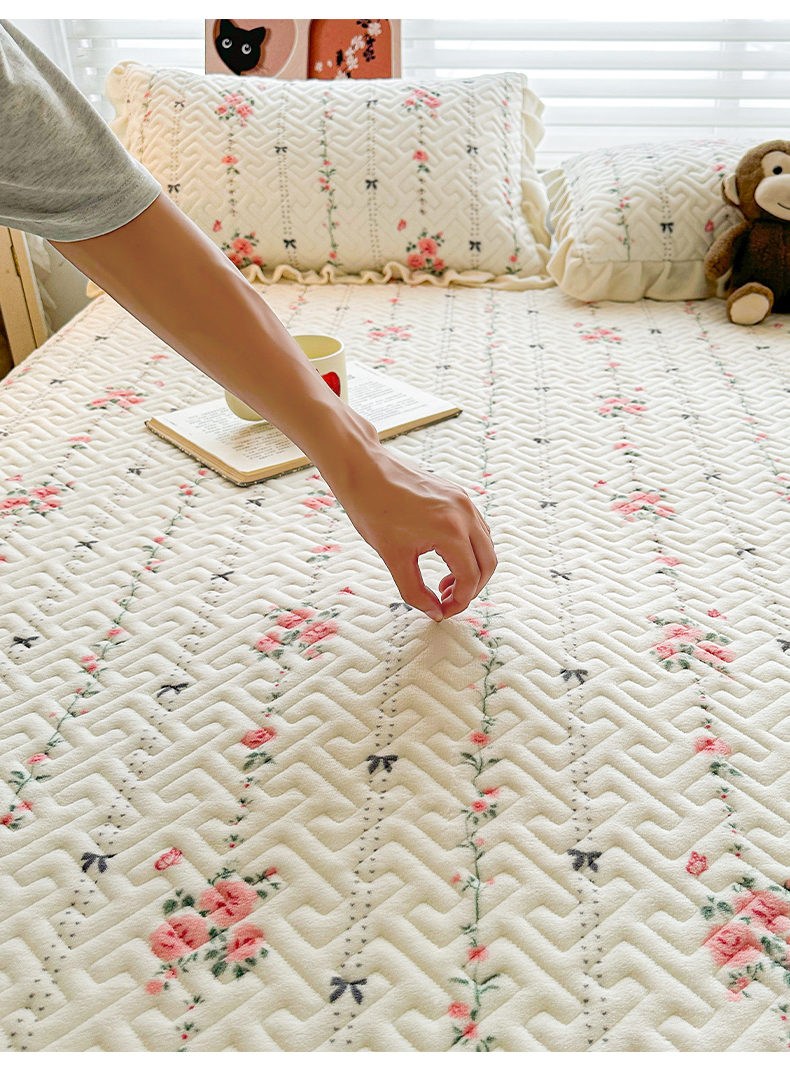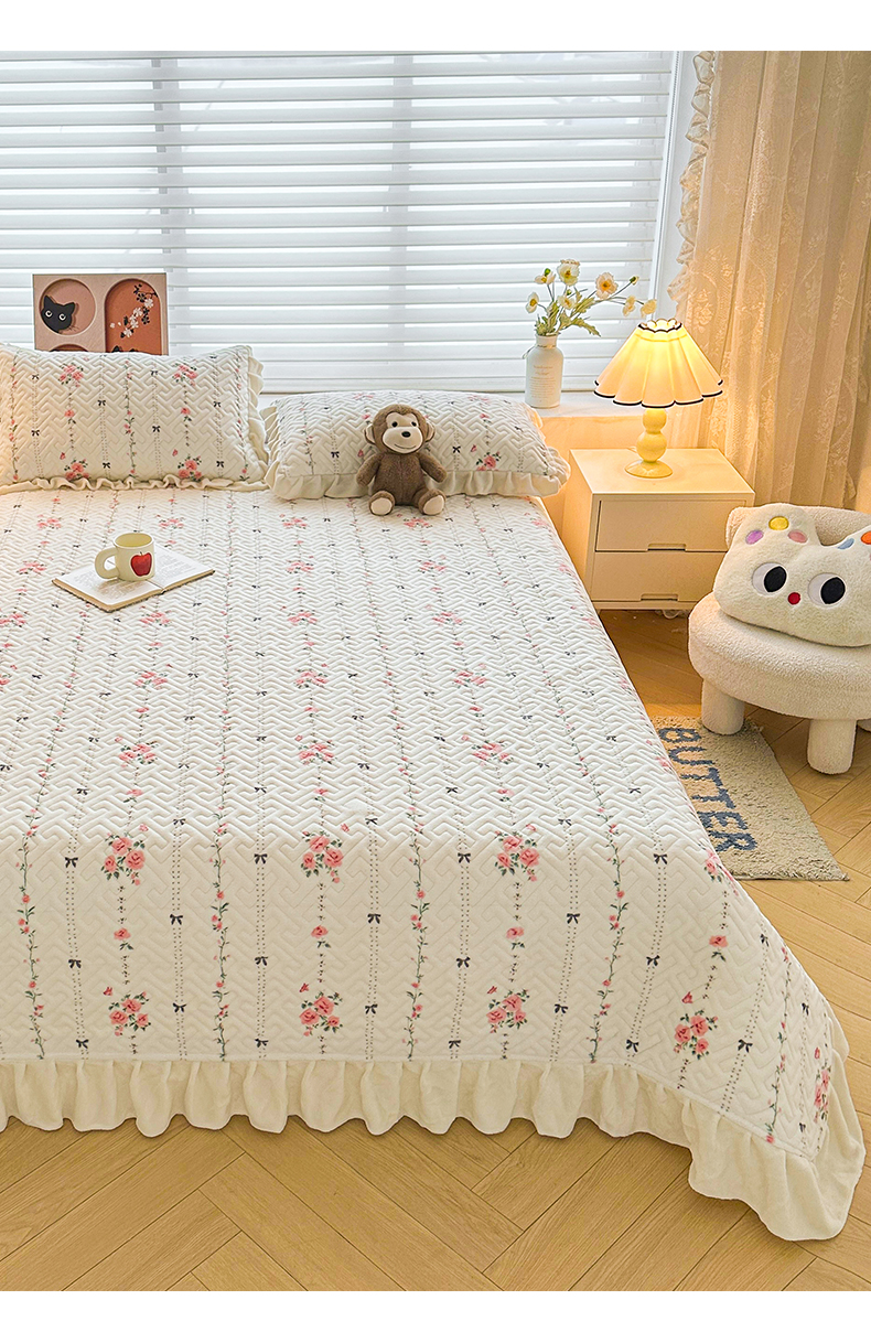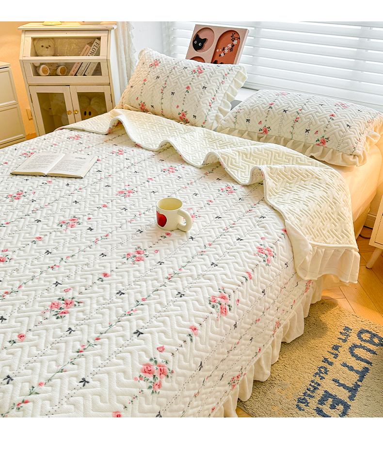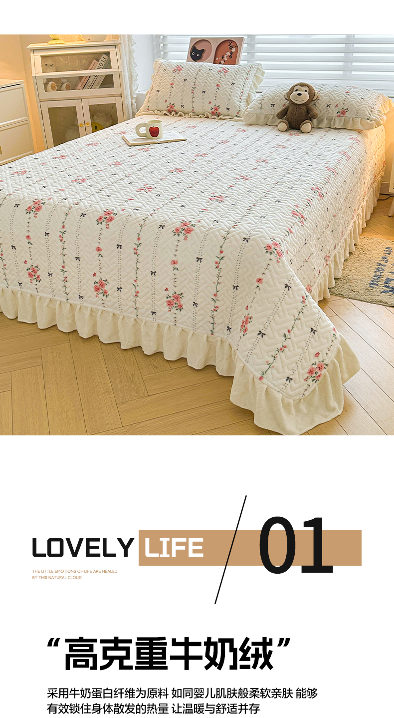 商品名称:凯罗 2025新款牛奶绒花边床盖印花小清新盖毯加大牛奶绒床盖床单 浪漫邂逅
