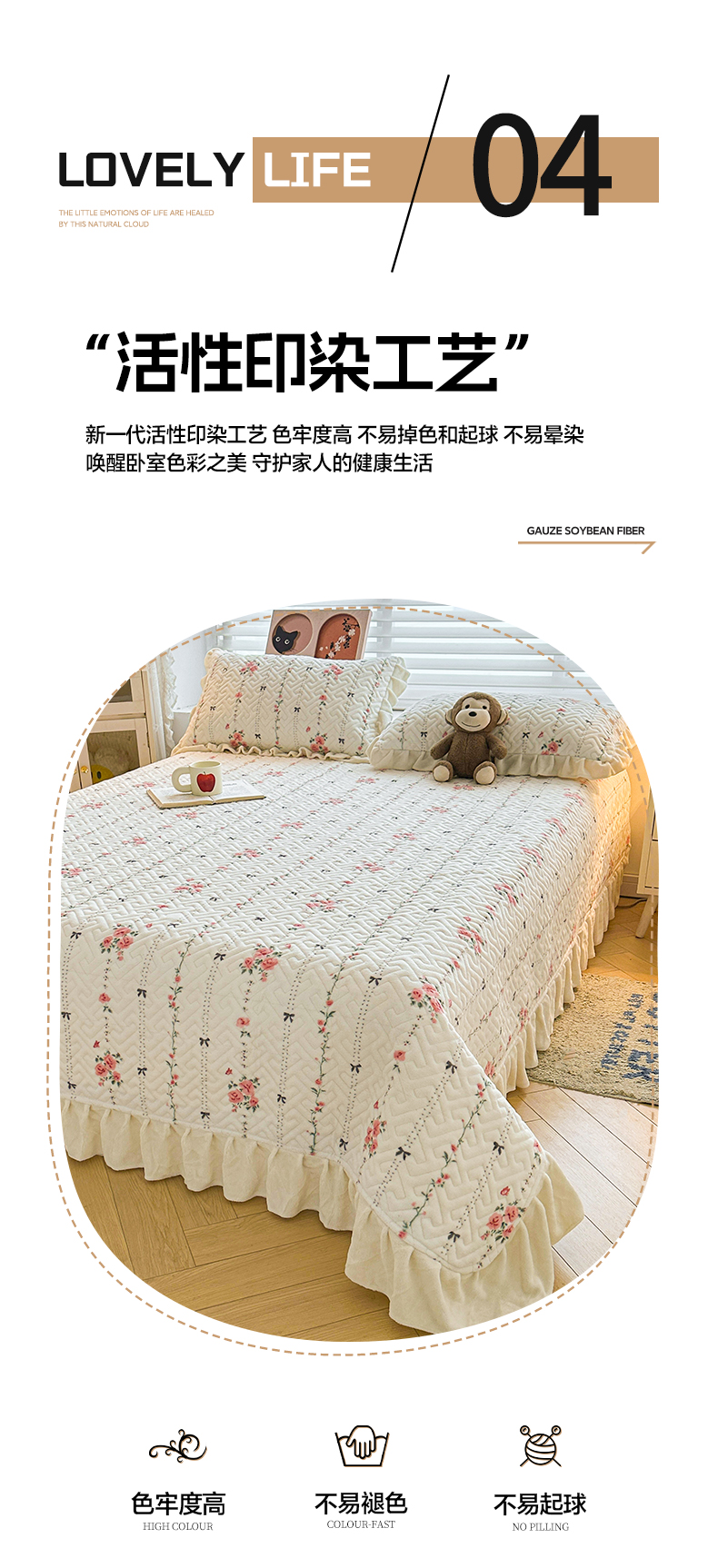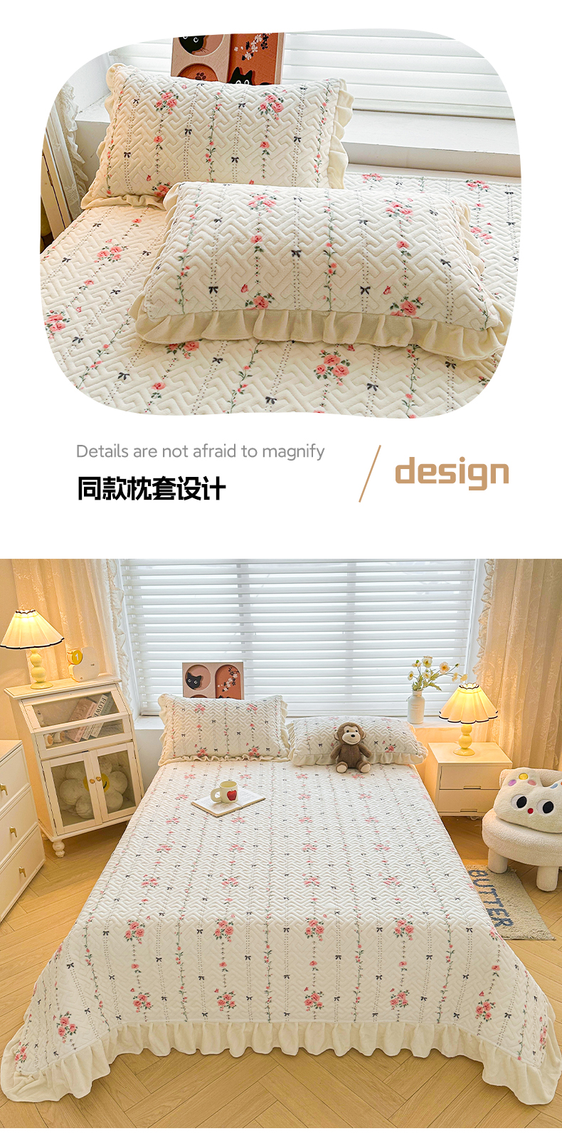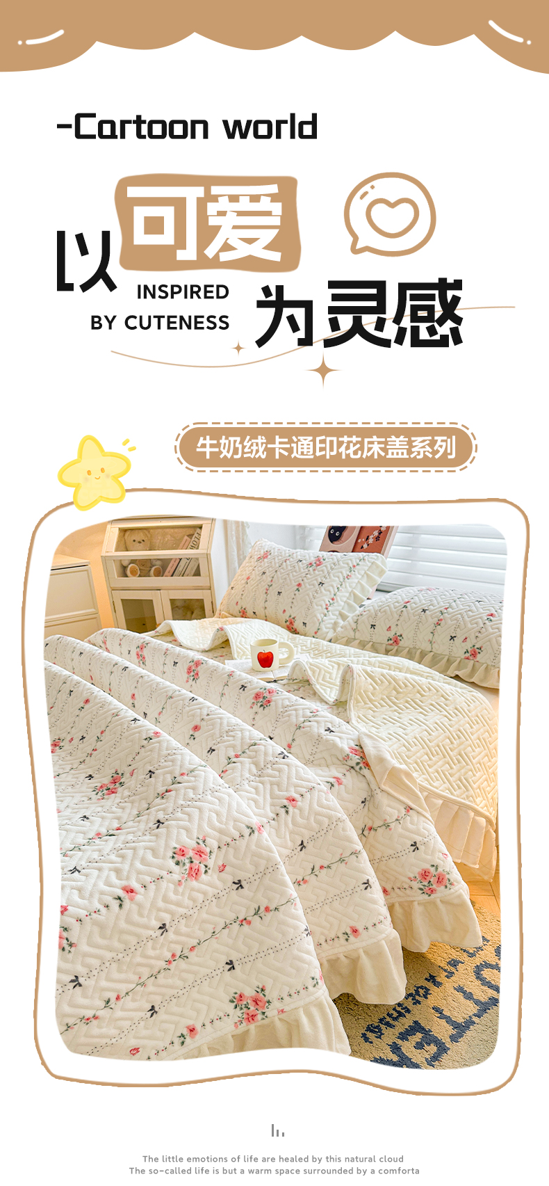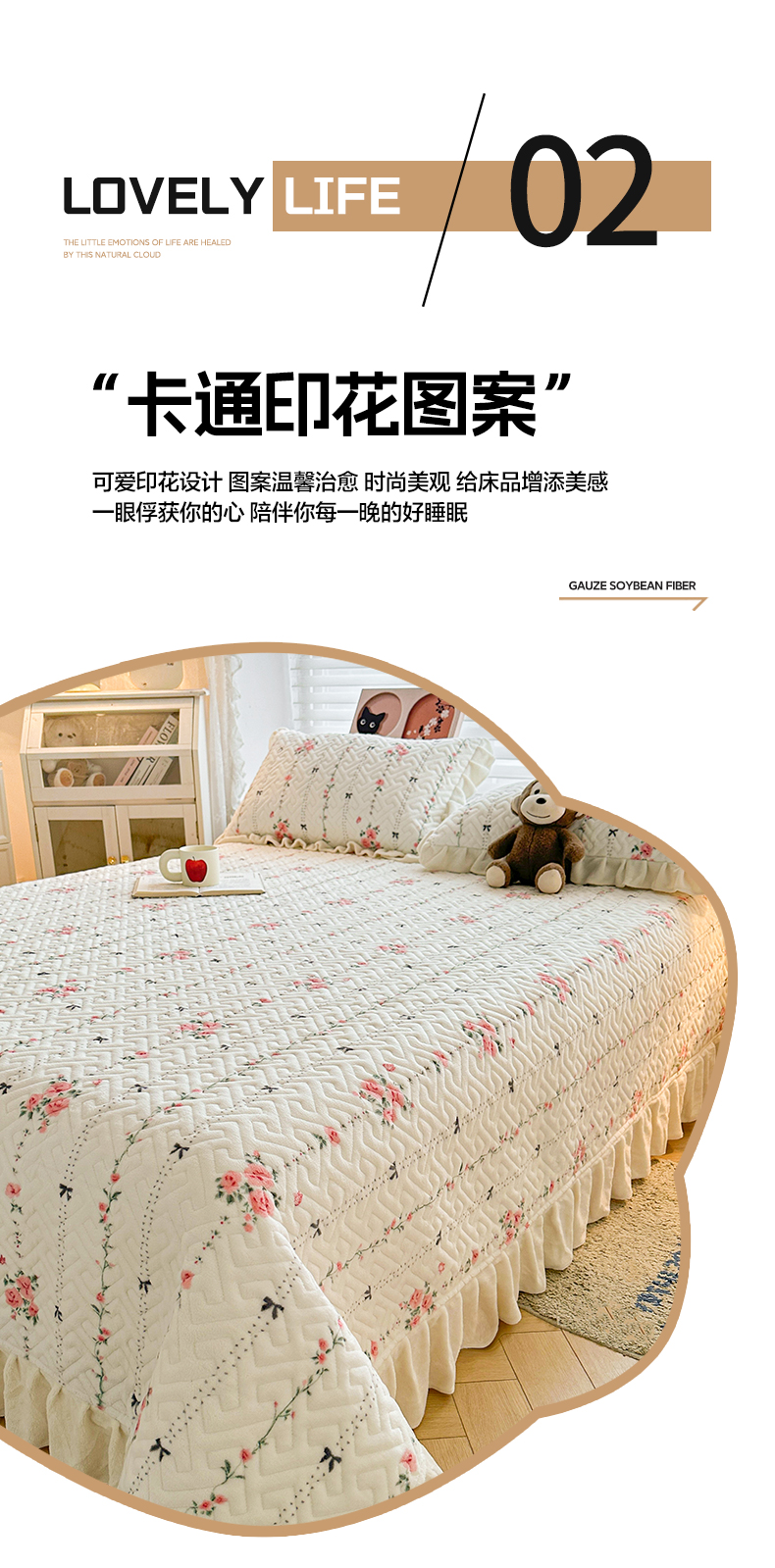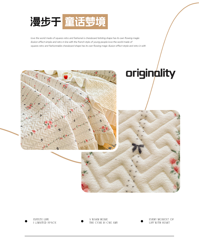 商品名称:凯罗 2025新款牛奶绒花边床盖印花小清新盖毯加大牛奶绒床盖床单 浪漫邂逅