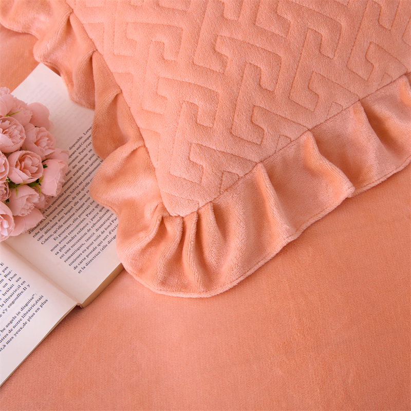 商品名称:畅畅家纺 2025新款11斤纯色韩版冬季超柔加厚牛奶花边床盖四件套 橙色