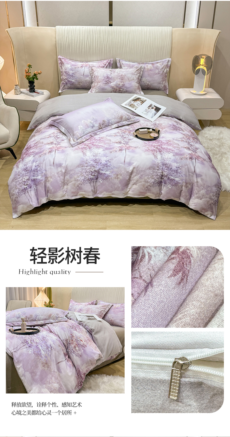 红日子纺织品 2025新款A类全棉磨毛数码印花四件套 悠然春景