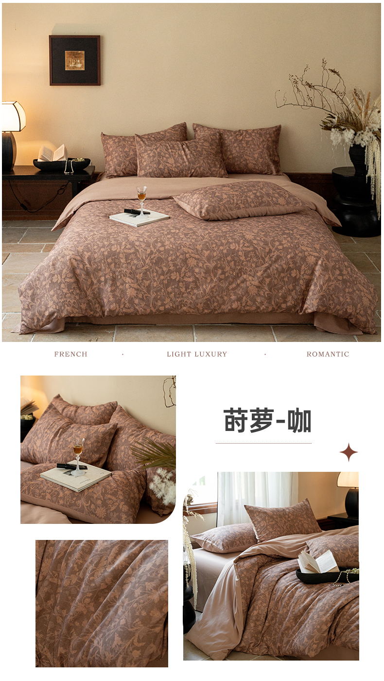 商品名称:禾时 2025新款全棉贡缎磨毛数码印花四件套 莳萝-咖