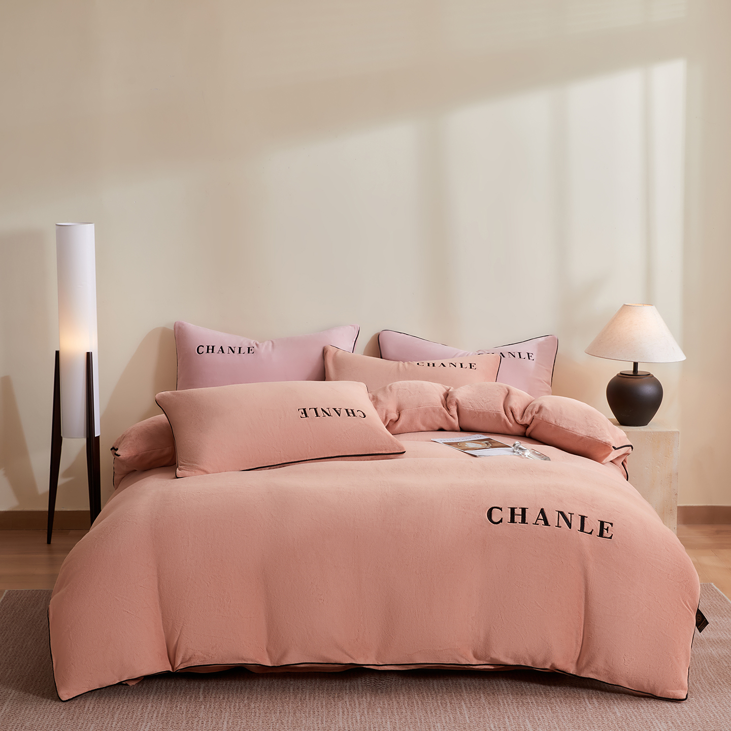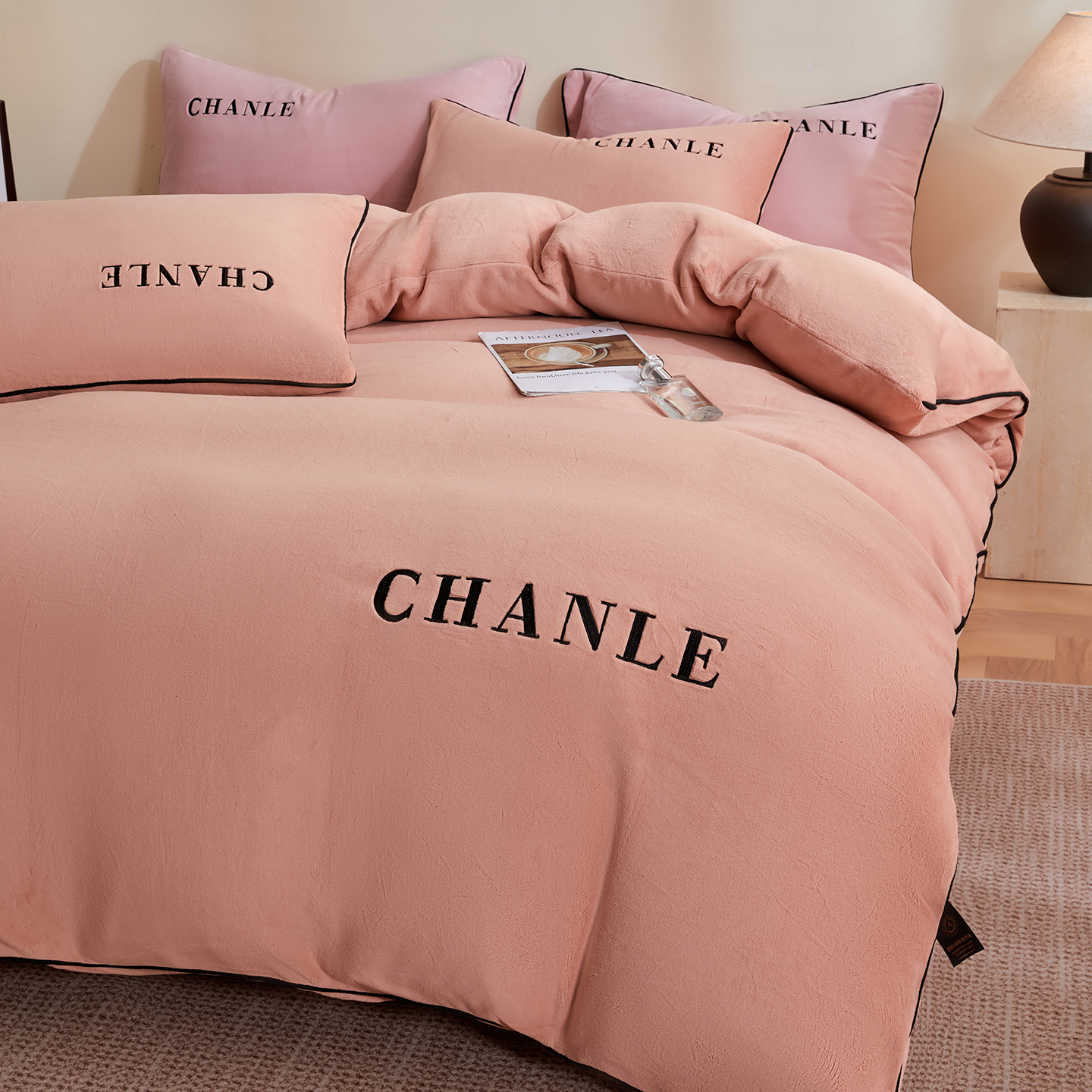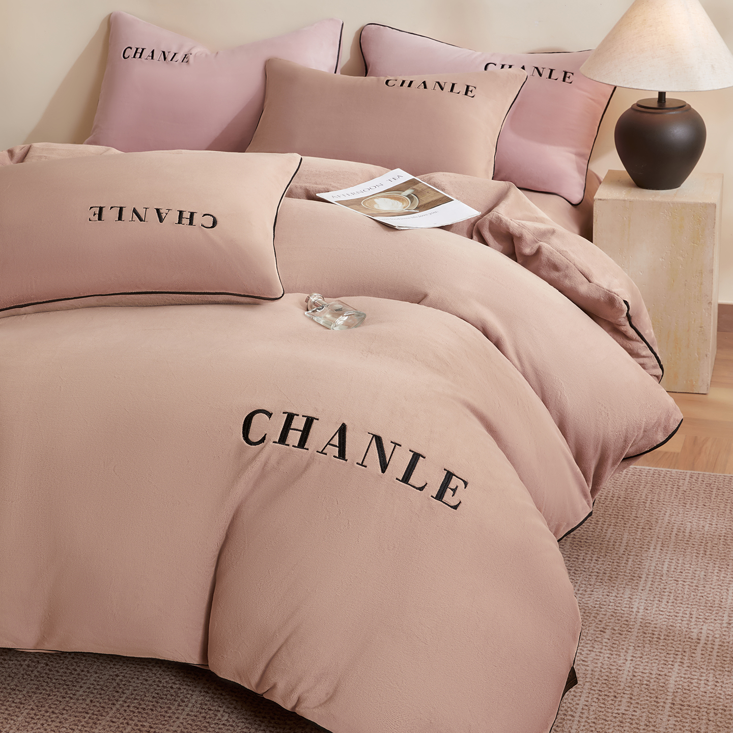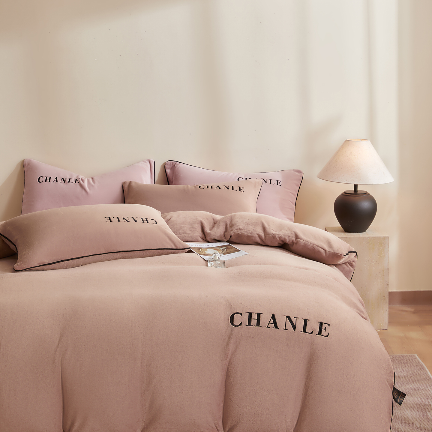 锦禾穗 2023新款牛奶绒四件套-丹麦貂 慕倾-粉色,慕倾-粉色