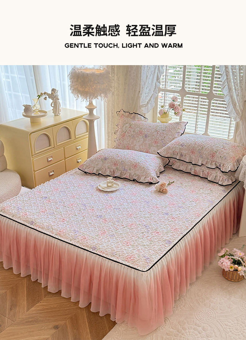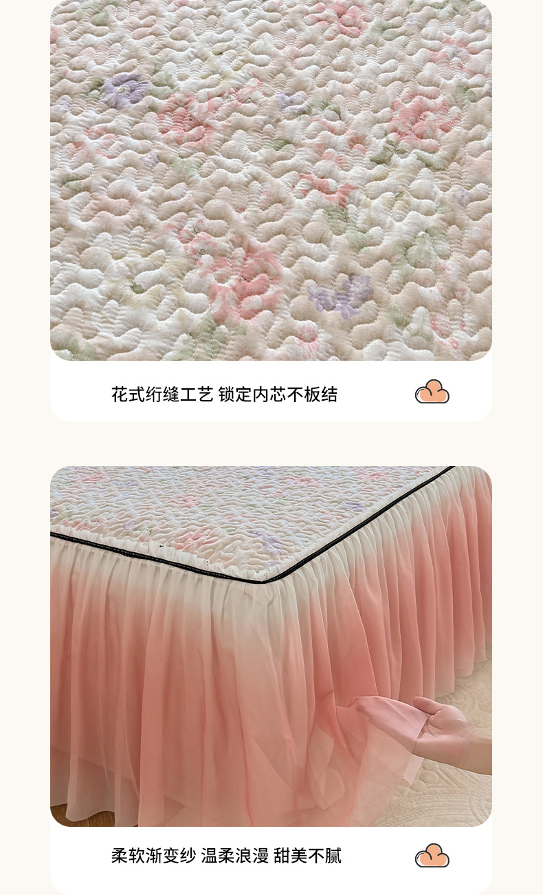 (总)金盛皇朝2025韩版公主风绗绣三层夹棉床盖学生宿舍床单,波点,彩虹桥,果粒橙,灵动花瓣,莫奈花园,小爱心,心动时光