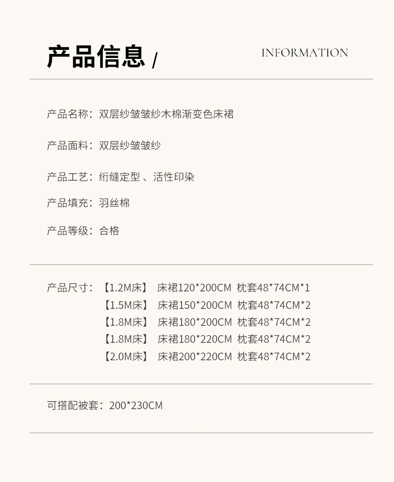 商品名称:(总)金盛皇朝家纺 2025新款渐变色床裙系列