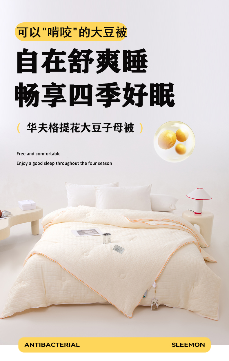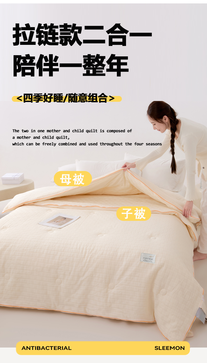 商品名称:VIP被业 2025新款华夫格提花大豆子母被二合一四季被被子被芯 浅灰
