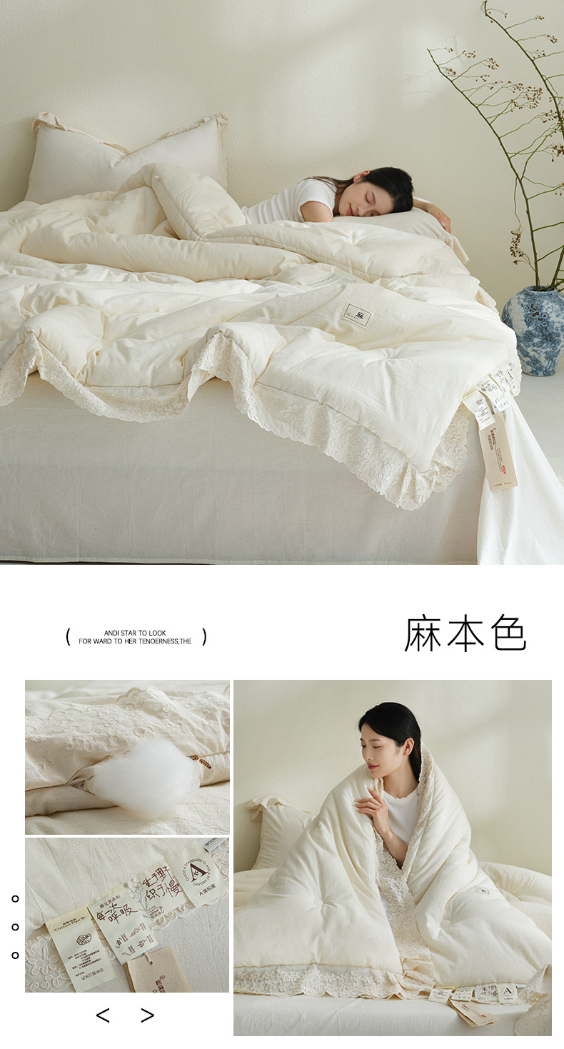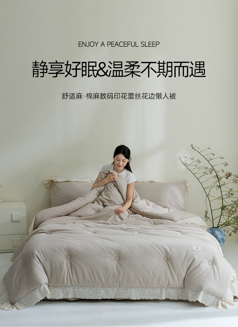 商品名称:桂雅居 2025新款舒适麻棉麻数码印花蕾丝花边懒人被被子被芯 组合
