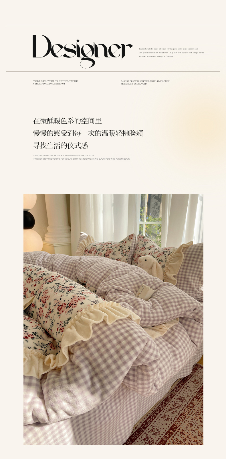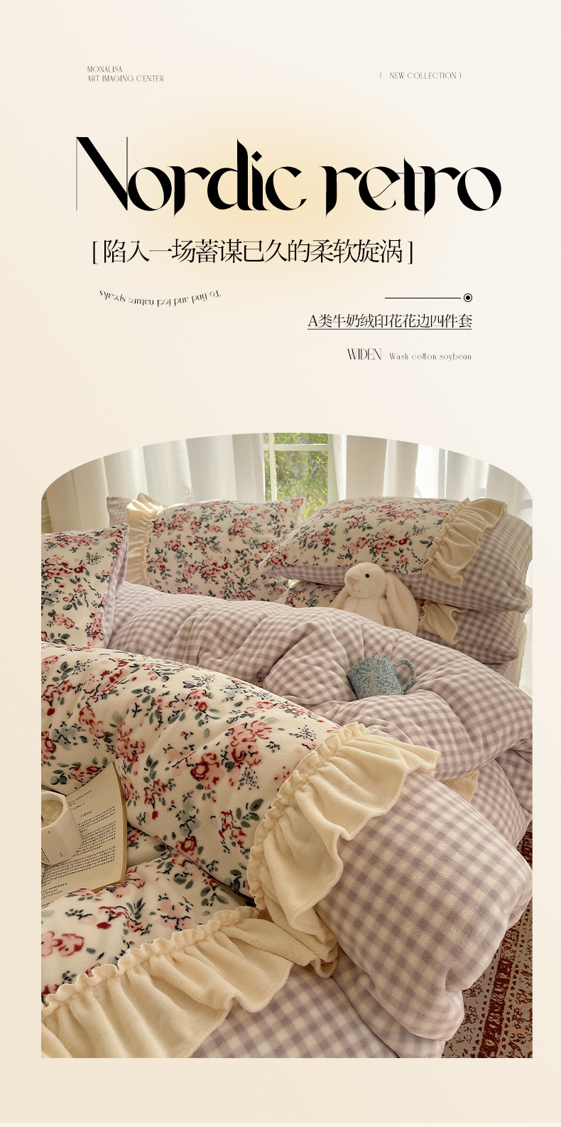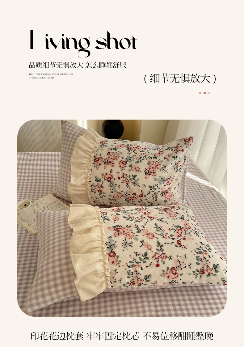 瑞莱 (持续上新)2025冬季新款拼接款花边牛奶绒四件套 雪中梅